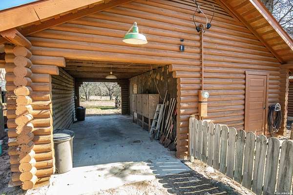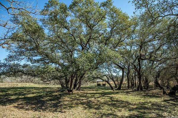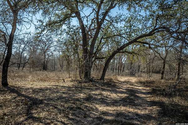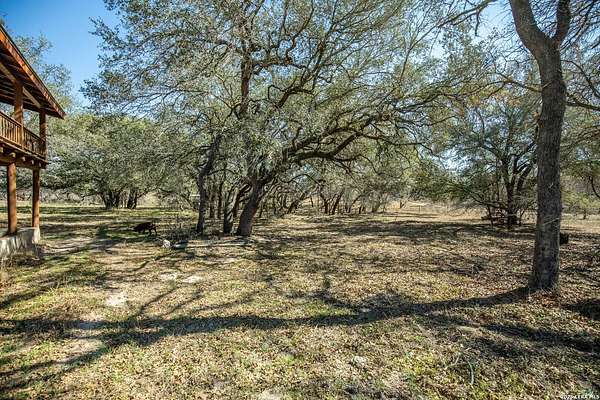 WHISPERING PINES FLORESVILLE RANCH is an exceptional 298 acre tract offering PRIVACY, beauty, and VERSATILITY in a classic South Texas ranch setting. Located just outside the growing town of Floresville, this property presents a RARE OPPORTUNITY for potential investment, future development, working ranch, hunting property, or multi-family compound! All mineral rights are owned and WILL CONVEY with acceptable offer! The ranch is densely covered with mature post oaks and ancient live oaks, creating a stunning canopy and unmatched natural character throughout the property. Adding to its charm, pine trees planted years ago surround an ORIGINAL TWO-STORY LOG CABIN that still stands on the ranch today-giving Whispering Pines Ranch both HISTORY and PERSONALITY. Approximately 50 acres of open native grass pasture provide EXCELLENT GRAZING OPPORTUNITIES, allowing the property to REMAIN AG EXEMPT while supporting cattle or wildlife management. The balance of wooded cover and open pasture makes this ranch highly functional and visually impressive. With its PEACEFUL SETTING, strong infrastructure, and proximity to major roadways, Whispering Pines Ranch offers the ability to enjoy wide-open space today while maintaining long-term upside in a rapidly growing land market*2 functioning wells and 2 TANKS, one stocked with bass*FULLY PERIMETER FENCED and cross-fenced*Metal building/workshop with hangar-style cover*Cattle pens with water trough*Multiple outbuildings and storage buildings*Several gated entrances onto property***With this much space, the POSSIBILITIES ARE ENDLESS!