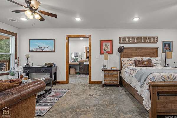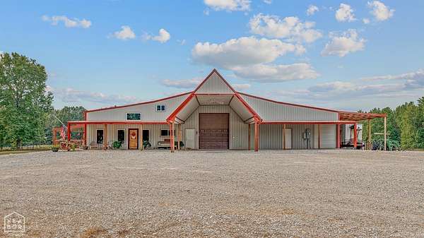 This one-of-a-kind, 4bedroom, 3.5bath, ranch style homes rests on a quiet and stunning 47-acre tract. Located just 5 miles North Paragould, this oasis is the perfect place for your horses and cattle to roam. A ball watering system is located in pastured areas. The property is fully fenced, surrounded by a tree line that only the biggest of deer like to run. 5 individual horse stalls are attached to the home by way of the 30x60 barn/shop area. A sunflower field, hay barn, tack room, storage area, storage room, covered parking, riding area, large chicken coop, make this unique property truly a site to see. The master bedroom, another bedroom, office, large laundry room, and 2.5 bathrooms are on the main level. Upstairs you will find 2 large bedrooms, a full bathroom, and a large additional living area. Rustic metal ceilings, wood accents, stainless steel appliances, epoxy countertops, pantry, ample storage, and a design that is truly breathtaking. A must see for anyone with equine/cattle or a love for the outdoors.