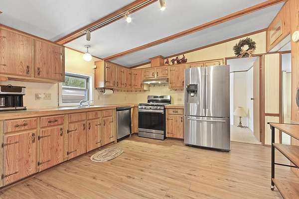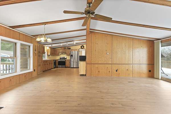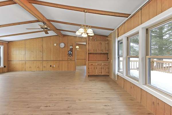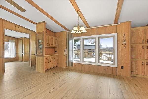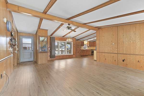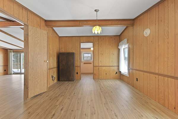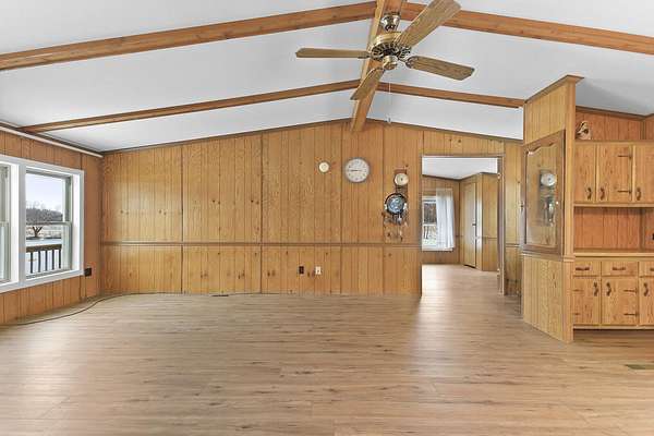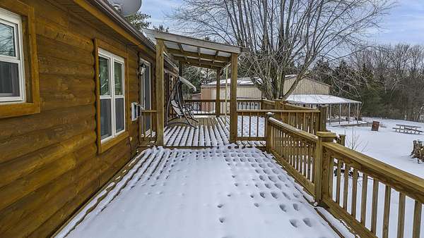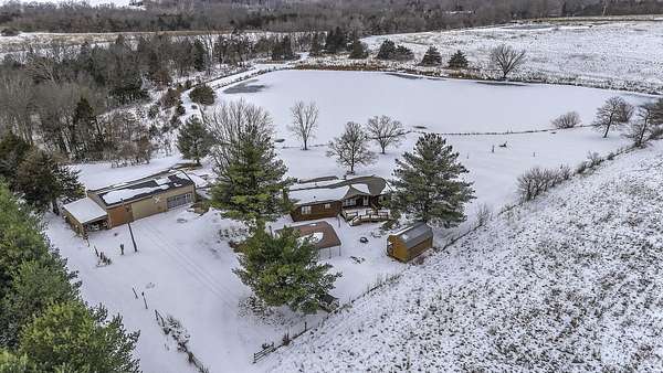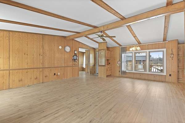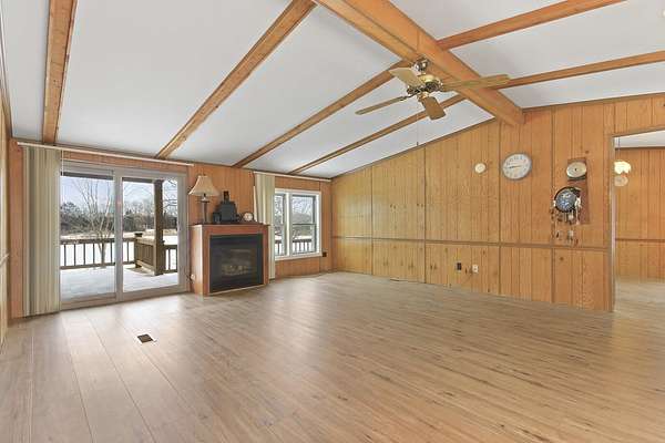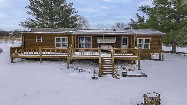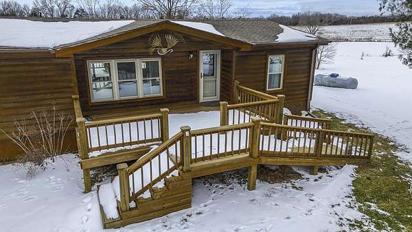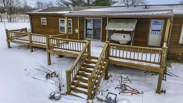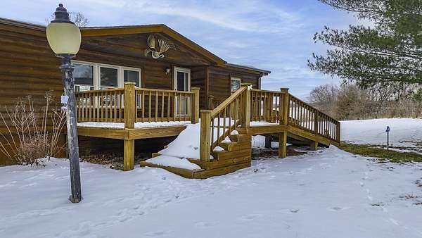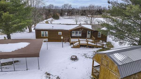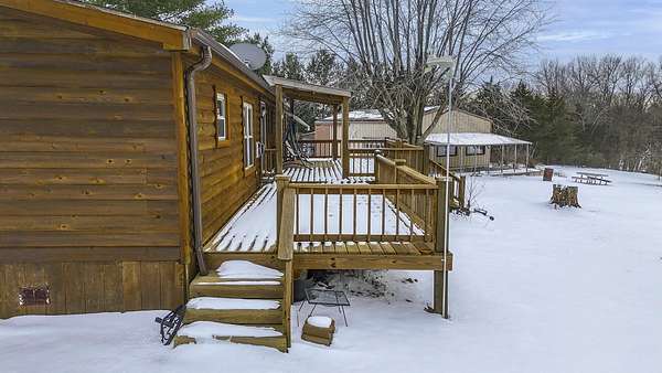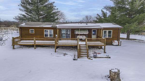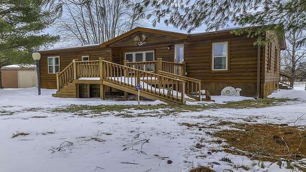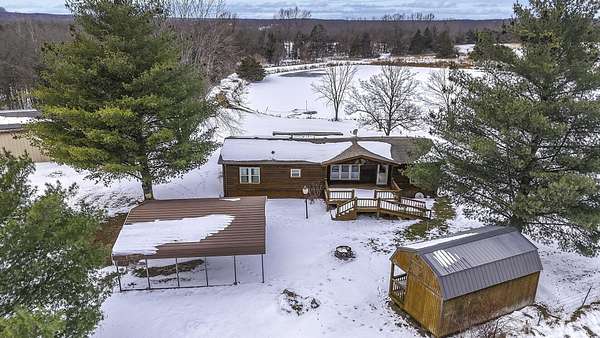Hidden among mature trees and open acreage, this maintained 3-bedroom, 2-bath modular home sits on 10 unrestricted acres. Surrounded by nature, the property provides frequent sightings of deer and local wildlife, creating a true cabin life feel.One of the property's most impressive features is the 2+ acre stocked pond, home to crappie, bluegill, bass, and catfish. Inside, the home offers thoughtful updates including new flooring throughout, newer windows, an updated handicap-accessible bathroom, and newer front and back decks. Paid-off solar panels keep the average electric bill around $55 per month! Wow! A brand-new water softener has also been installed.