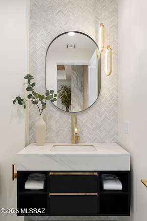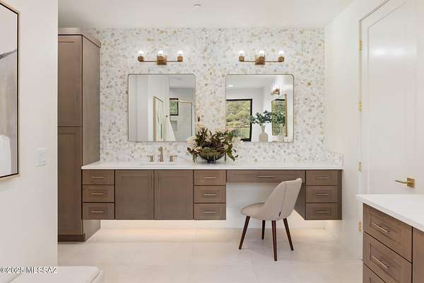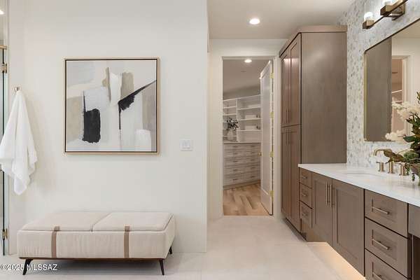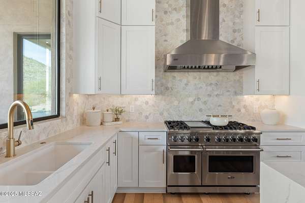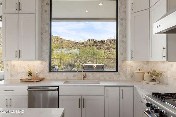 Enjoy the resort style backyard with pool, elevated spa, firepit lounge, and built-in BBQ framed by saguaro studded mountains and natural rock outcroppings. Very Private setting. Ideally located near the Gallery Golf Club and Fitness Center, hiking trails, and high-desert serenity. Come experience the best of modern luxury, with organic warm finishes. Elegant livability at the base of the Tortolita Mountains.