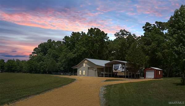 Welcome to Cedar Ridge! QUIET LIVING! Welcome to this SECLUDED, one-of-a-kind property of nearly 20 acres with a residence over 1000 feet from the main road and yet, only minutes from Pike Road and Chantilly Parkway - peace, quiet and close to conveniences! The well finished smaller home has shiplap, v-groove pine ceilings, granite counter tops and a cedar lined closet. Live in the home or build a separate larger residence on the property! The acreage has both hardwood, pine, pasture, fields, and is home to deer and turkey - check out the pictures! The home comes with a storage side of over 800 square feet under the main roof, a separate covered RV parking area with power plus an all-metal storage shed with power. A covered porch on the North side of the home runs the entire length providing a great shaded living area. Utilities are completely buried all the way to the home and the septic is set up for three more bedrooms. Once you see the pictures and videos, you will want to set up a tour with me or your preferred realtor!