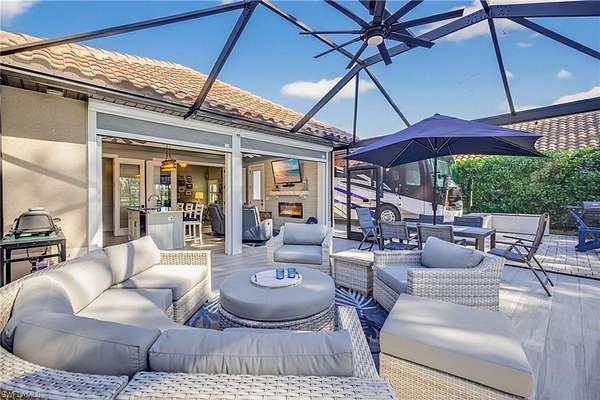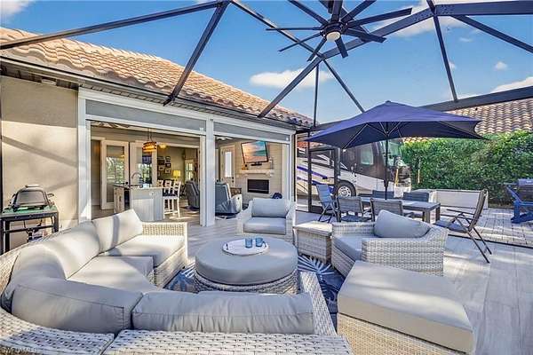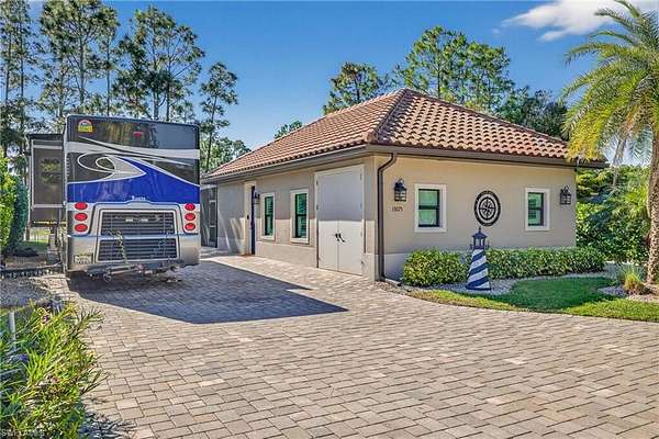 WATERFRONT. OVERSIZED. UNMATCHED. Welcome to this exceptional waterfront offering at Golden Palms Motorcoach Resort, an exclusive Class A and Super C RV community in Southwest Florida. Golden Palms Luxury Motorcoach Resort is widely recognized for its elevated design standards. Golden Palms uniquely allows some of the largest custom cabanas permitted in any upscale resort in the Southwest Florida area-a feature rarely found in Motorcoach Resorts. Perfectly positioned on a waterfront lakeview site, this property delivers location, scale, and true luxury. The centerpiece is an impressive 840+/- sq ft custom-built cabana, designed for comfort, entertaining, and extended stays, with generous living space and quality finishes throughout. An oversized screened lanai further enhances the outdoor living experience, creating a seamless transition between indoor comfort and tranquil lakefront relaxation. Perfectly suited for discerning owners seeking a private retreat or a high-caliber investment, this premium site delivers lifestyle, flexibility, and long-term value within a gated, amenity-rich resort. Golden Palms residents enjoy oversized deeded RV Lots, with plenty of room for you "BIG RIG", golf cart, trailer, and more. The RV lifestyle is on full display here, with upscale amenities, and a vibrant social atmosphere-just minutes from dining, shopping, beaches, and Southwest Florida International Airport. A truly rare opportunity to own a lakeview motorcoach property with one of the largest cabanas available in Southwest Florida, in a resort that stands in a class of its own. See how life changes when you own your slice of paradise at Golden Palms, where it is beautiful one day, and perfect the next!