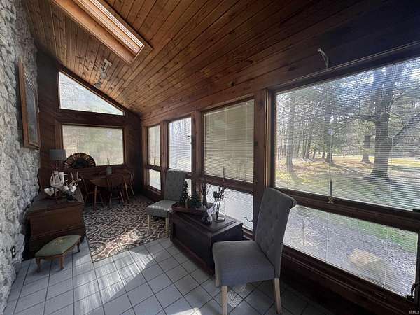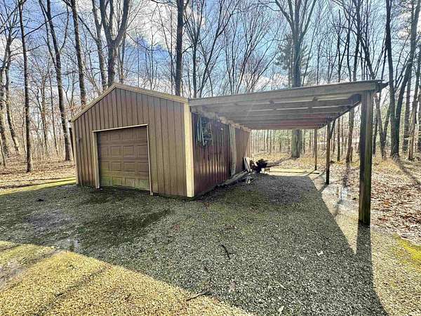 Hidden gem nestled back on a quiet lane, you will find this 3 bedroom 2 bath home less than 5 minutes from Shakamak State Park all situated on 4.93 acres! Inside includes open floor plan Kitchen, Living, and Dining areas with HUGE bonus room. Living room boasts vaulted ceilings with stone accent wall, wood stove, and plenty of windows to bring in natural light. 2 main level bedrooms can be found as well as a recently updated full bathroom with extra vanity/storage space. Master bedroom suite can be found upstairs with an adjoining bathroom and walk-in closet all recently updated as well. Oversized Main level laundry/mud room perfect to step right into after being outside. Outside find not 1, but 2 detached garages. 26x30 pole barn with 2 garage bays and patio area. 18x24 detached garage includes a lean-to for extra storage. Enjoy quiet evenings off the back deck. Located On dead-end road! Won’t last long!