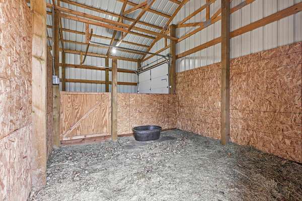 - Barn, Corral/Stable, Fence Wood, Horses Allowed, Shed, Unpaved Street