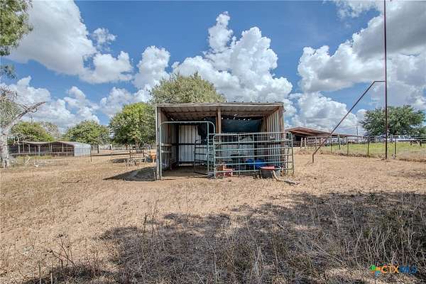 Welcome to your private slice of Texas paradise located in the heart of Mission Valley and minutes from Victoria, Texas! This expansive country retreat is nestled on 25.44 sprawling acres and offers the perfect blend of rural charm and modern comfort. The centerpiece is a beautifully maintained, Mike Sherman built, 2,100 sq ft home featuring a spacious living area with high ceilings, a wood burning fireplace, fresh interior paint, a newly remodeled master bathroom and a well-appointed kitchen perfect for family gatherings or entertaining guests. The open concept 3-bedroom, 2-bath home features a split floorplan and offers serene views of the surrounding countryside ideal for a weekend getaway or a full-time residence. Stepping outside, we have a private backyard with new iron fencing with an oversized storage shed that can be used as a playhouse or office. The barndominium guest house features open floor concept living fully finished with its own kitchen, bathroom and laundry room that seamlessly combines space and comfort and versatile living. With its own utilities, this separate living quarters has a perfect setup making it ideal for multi-generational living, hosting guests in style, or potential rental opportunities. Equestrian & agricultural amenities ideal for horse lovers or hobby farmers, the land includes three supplementary barns for livestock, tack rooms, tool sheds, cattle pins and a horse barn with well-constructed stalls and an arena with lighting. With untapped possibilities and potential, there is ample space for all of your farming and recreational equipment. This property offers a potential second entrance off of Wagon Trail as well as new fencing on all sides. Whether you're looking for a peaceful retreat, a place to embrace the great outdoors or expand your livestock operation, this remarkable property provides endless possibilities. Don't miss your chance to own this true Texas gem in the highly sought after Mission Valley.