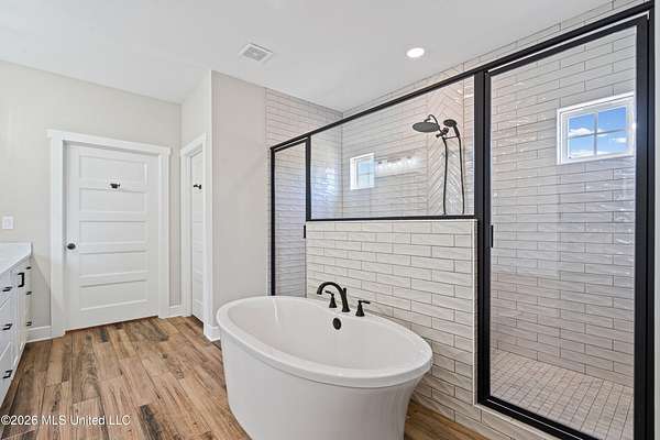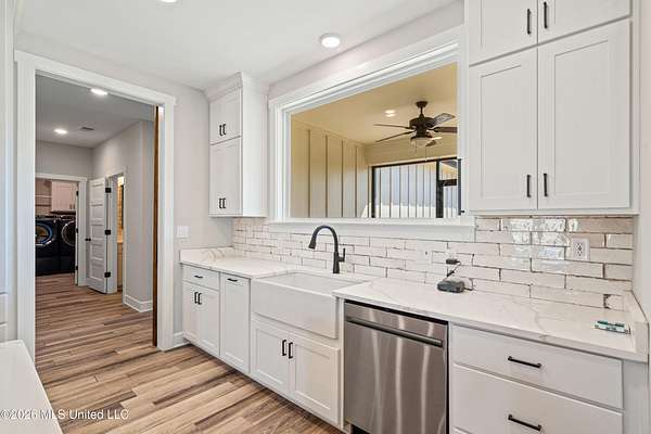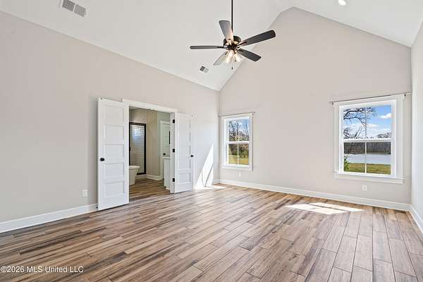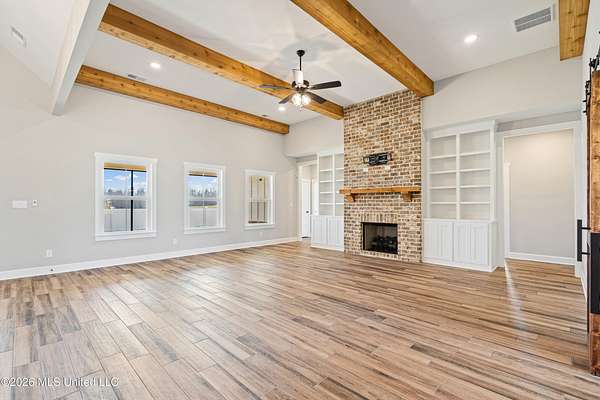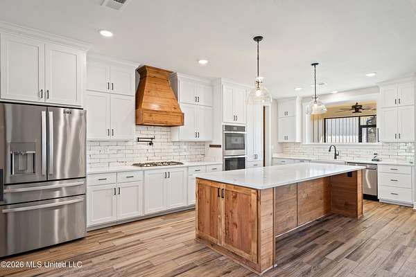 Welcome to your dream modern farmhouse--where luxury, functionality, and peaceful country living come together on 2 acres with beautiful water views. Stunning One-Level Farmhouse | Water Views | No HOA Experience the perfect blend of comfort and craftsmanship in this 2-year-old, single-level farmhouse offering 4 bedrooms, 3.5 baths, a private office, and a 3-car garage, all thoughtfully designed with a desirable split floor plan. Step inside through impressive double front doors into an expansive open-concept layout featuring a seamless flow between the kitchen, dining, and living areas--ideal for both everyday living and entertaining. The living room is anchored by a striking brick fireplace with custom built-ins, while the dining area boasts vaulted ceilings and elegant French doors leading to a large screened-in patio. The chef's kitchen is a showstopper with: Oversized island with storage and ample seating Custom cabinetry extending to the ceiling Double ovens & gas cooktop Farmhouse sink Walk-in pantry with a sliding barn door Enjoy serene outdoor living with a screened-in patio overlooking water views, a partially fenced backyard with maintenance-free vinyl fencing and double gate, and professional landscaping that enhances the natural beauty of the property. The private primary suite is a retreat of its own, featuring: Vaulted ceilings Spa-like bathroom with a large walk-through shower & separate soaking tub Dual vanities Expansive walk-in closet connected directly to the laundry room The laundry room is both stylish and functional, equipped with a **GE Sapphire Blue Washer and Dryer set with pedestals, folding station, and utility sink. A custom barn door allows you to close off the primary suite for added privacy when guests visit. On the opposite side of the home, you'll find: Two bedrooms connected by a spacious Jack-and-Jill bath with abundant storage A third bedroom with its own private ensuite Additional highlights include: Dedicated home office with custom adjustable shelving and barn door Wood plank tile flooring throughout (no carpet) Wood shelving throughout the home Stained garage floor with lifetime warranty Extensive electrical upgrades and smart home features including Yale Smart Lock entry locks Motion-detection lighting Soffit lighting on a Leviton Smart Switch system with dusk-to-dawn automation 60-amp charger compatible with a Tesla Powerwall Enjoy the tranquility of a country setting with the convenience of modern upgrades--and best of all, no HOA. This Move-In- Ready home truly has it all--space, style, and smart living with a view. Schedule your private showing today!