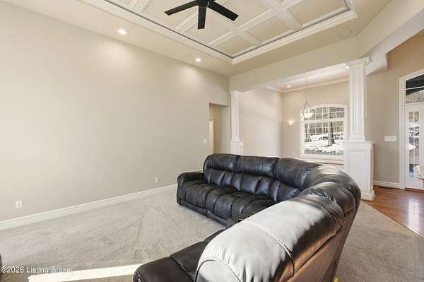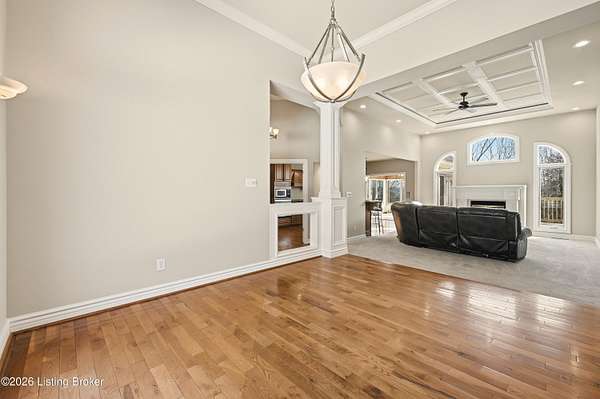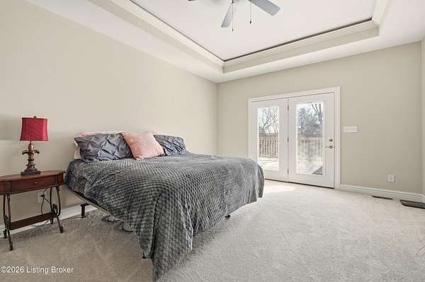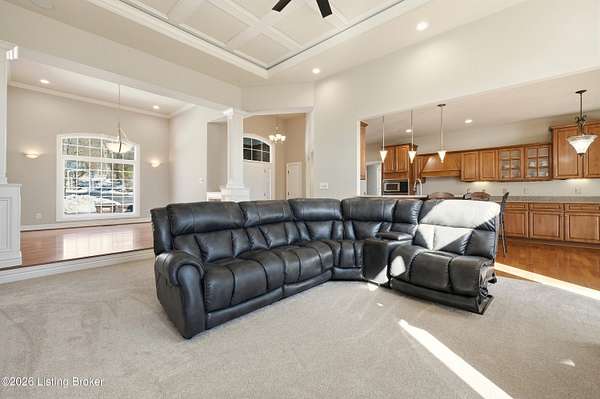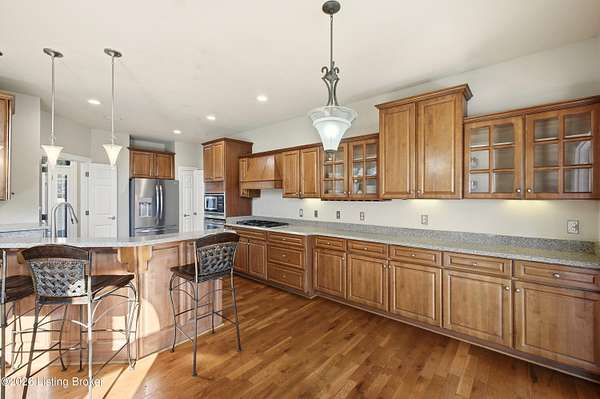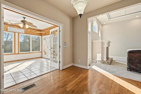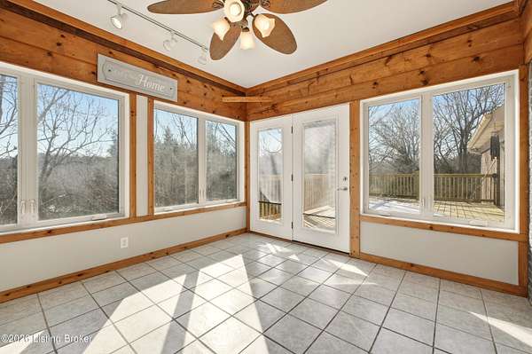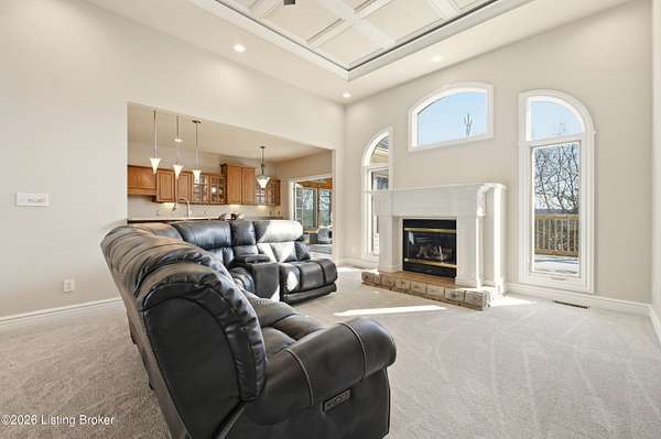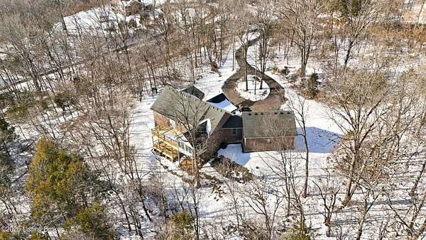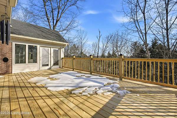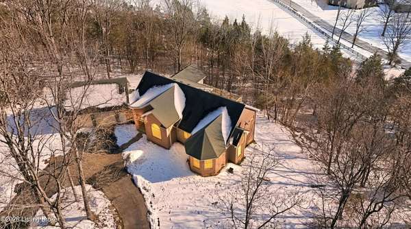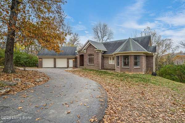 Wonderful seclusion yet convenience best describes this gorgeous custom built 4 bedroom, 3 full bath 3400 sq ft. walkout ranch. This home is nestled on 3 wooded acres near the beautiful and scenic Floyds Fork park system. Thoughtfully designed and meticulously finished, this home offers privacy, nature, and quality craftsmanship all in one package, you do not want to miss out on this one. Step inside to 12-foot ceilings that create an open, airy feel throughout the main level. The spacious kitchen features abundant cabinetry, granite countertops, and a bright sunroom surrounded by windows with wooded views in every direction. The first floor primary bedroom suite includes a private ensuite bathroom with a walk-in closet and a soaking tub, offering a retreat at the end of a long day. Step out from the main level to a brand-new two story, double deck, perfect for morning coffee or evening gatherings and entertaining among the trees. Recent updates include brand new, high end carpet and pad, full house and trim paint, deep clean and new fixtures throughout! The finished lower level expands your living space with a cozy family room featuring a second gas fireplace, two additional bedrooms, an office, and ample storage. With minimal lawn maintenance thanks to the mature tree canopy, you'll have more time to relax and enjoy your surroundings. Located just minutes from the Gene Snyder Highway, Beckley Creek Park and all the amenities of Middletown, Jeffersontown and Taylorsville, this home offers the best of both worlds; a peaceful retreat with modern convenience. Schedule your private tour today!
