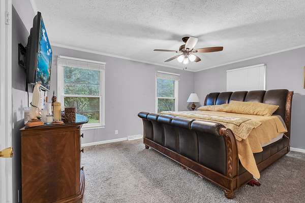 A unique opportunity to own a private retreat less than a mile from Center Hill Lake and close to numerous state parks. This 4 bedroom, 3 bath home offers 3844sq ft and sits on 2 unrestricted acres with a detached garage. Upstairs hardwood floors, granite countertops, stainless steel double sink, solid wood cabinets, double ovens, 5-burner gas cooktop, and custom finishes highlight the chef's kitchen and main living spaces. Upper level has 3 bedrooms, 2 bath, with walk-in closets, while the fully finished basement includes a second master bedroom with attached en-suite, private living room with gas log fireplace, office, and separate storage room. Recent updates include fresh paint, brand new HVAC with dual controls, whole-home dehumidifier, new air purifier, new 6" gutters, new hot water heater, 10 yr old metal roofs and home security system. Outdoor area includes a fenced backyard, concrete patio, mountain-to-lake views, and a 26x28 detached garage including water and electricity. Washer, dryer, and 3 wall mounted Tv's to stay with property at closing