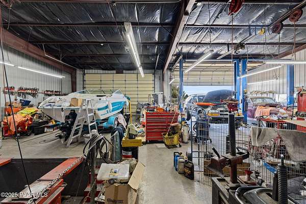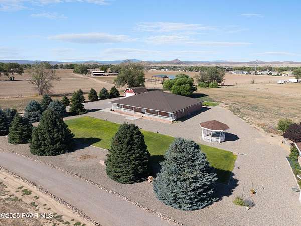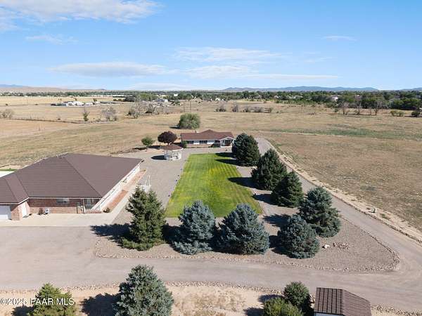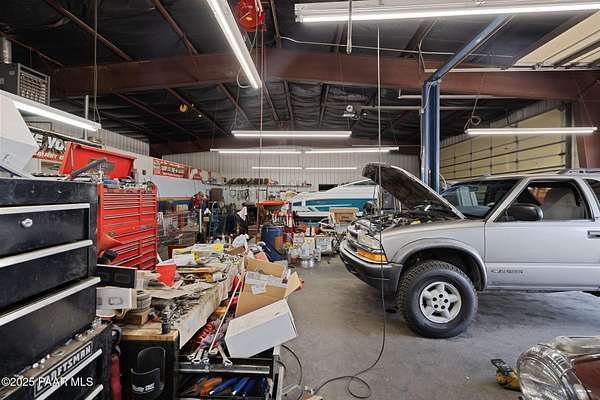 Prime Commercial Opportunity in the Heart of Chino Valley! Located directly off Highway 89 in the commercial heart of Chino Valley, this rare 7.75-acre property is ideally positioned in Chino Valley's thriving Uptown Center. With over 300' of HWY 89 frontage this property is offering unmatched potential for business, investment, multi-use living or just about anything you can imagine. Currently zoned mixed use w/ CM-1/AR-5 this property is undergoing zoning updates to HMU (Horizontal Multi-Use). Featuring a 30+ GPM producing private well, 3 septic systems, this versatile estate is ready to support a wide range of uses. The property includes a spacious 3,942 sq ft main residence (does not include basement) with 3 bedrooms, 2.5 baths, multiple living areas, a basement & an attached 3-car garage. A separate 1,512 sq ft guest house w/ 2 bedrooms, 2.5 baths & its own 2-car garage provides the perfect setup for extended family, rental income, or office space. home's Main home features 2X6 framing, 48' of blown insulation in the Attica formal, dining room, office, family room, AZ room, expansive craft room, 2 big walk-in closets and a jetted tub in the Master. The kitchen has custom cabinets, double subzero fridges, a large island and a huge pantry. Outside you will fall in love with the garden area, variety of trees, and the dreamy farm setting. Need space for equipment, inventory, or vehicles? You'll love the impressive 5,000 sq ft, heated, commercial auto repair shop that includes 2 bathrooms, a laundry room, an office, parts room, 6'' insulation throughout the whole building, 3 22' wide by 14' tall overhead doors. 2 overhead doors have electronic openers on them, single phase 220, air lines plumbed throughout building, natural gas heater and hot water heater, fire alarm, a front-end alignment pit, an alignment machine and 2 lifts. There is a fenced yard outside for securing vehicles and personal property. A large water tank has been installed on the property for fire suppression And there's more...an additional 2-car detached garage for even more storage. Whether you're looking to develop a thriving commercial venture, create a multi-generational estate, or simply invest in one of the most dynamic areas of Chino Valley, this property offers endless possibilities in an unbeatable location.