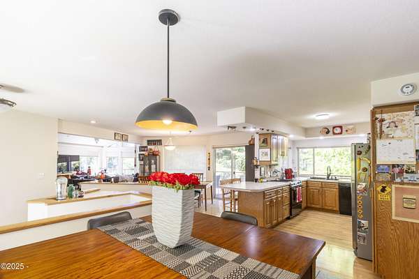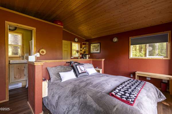 Your Private Fishing Sanctuary is calling. Riverside residence nestled in a mature forest. This 3-bed, 3-bath and 2 bonus rooms overlooks the Sitetz River. Towering old-growth trees and abundant wildlife sightings. Inside, vaulted ceilings, oversized windows allowing natural light to pour in. A wood-burning fireplace, tiled entry, warm wood floors and upgraded carpet. The main level includes a functional kitchen with spacious countertops, lots of storage and electric appliances, with forest and river views from every angle.Primary suite includes a walk-in closet, jetted tub, separate shower and deck entry. spacious office or reading room. Second floor includes large den or living room, guest bedroom, bathroom and two bonus rooms. RV garage, 2 work shops and a River Bunkhouse for guests. Downstairs: two generous bedrooms, a full bath, and a second living area with two bonus rooms ideal for guests, hobbies, or potential multi-generational living. Outdoor living is seamless, with deck access from several rooms. A 3-car garage, separate RV/boat bay for the Steelhead fisherman, and utility garage provide room for everything. A charming bunkhouse sits just steps from the main home, perfect for guests or creative retreat. Modern systems include a high-efficiency HVAC, whole-house generator, and excellent well water Large price drop due to the business being excluded.