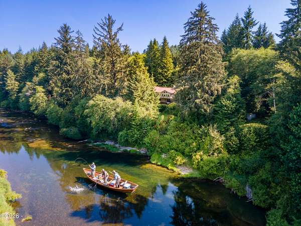 Private riverfront retreat on the Siletz River. Fishing Sanctuary minutes to the Pacific Coast. Set among towering old-growth trees with abundant wildlife, this secluded property offers privacy, flexibility, and a true Oregon lifestyle. The main residence features vaulted ceilings, oversized windows, warm wood floors, upgraded carpet, and a wood-burning fireplace, all designed to capture forest and river views. The main level includes a functional kitchen with generous counter space and storage, plus a spacious primary suite with walk-in closet, jetted tub, separate shower, and deck access. A dedicated office or reading room completes the main level. The lower level offers a large den or second living area, two additional bedrooms, full bath, and two bonus rooms ideal for flexible use. Great space suitable for guests or multi-generational living. Outdoor living is seamless with deck access from multiple rooms. The property includes a three-car garage, separate RV/boat bay, utility garage, two workshops, and a charming river bunkhouse for guests or creative use. High-efficiency HVAC, whole-house generator, and excellent well water. Recent price adjustment reflects the property now being offered as a residential home only, with the business excluded. Call for your personalized tour today!