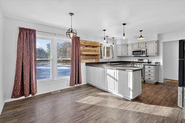 - Dishwasher, Disposal, Microwave, Oven, Range, Refrigerator, Washer, Water Softener Owned