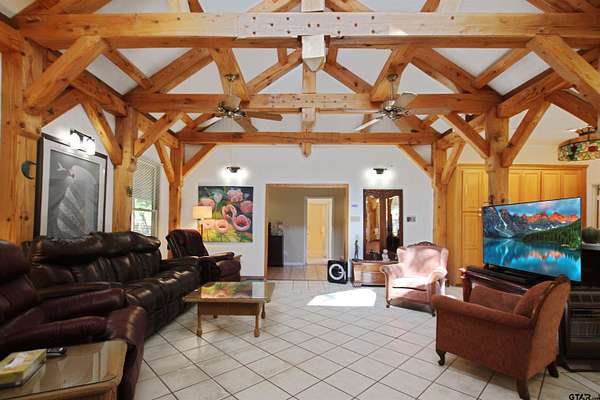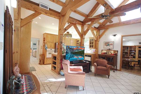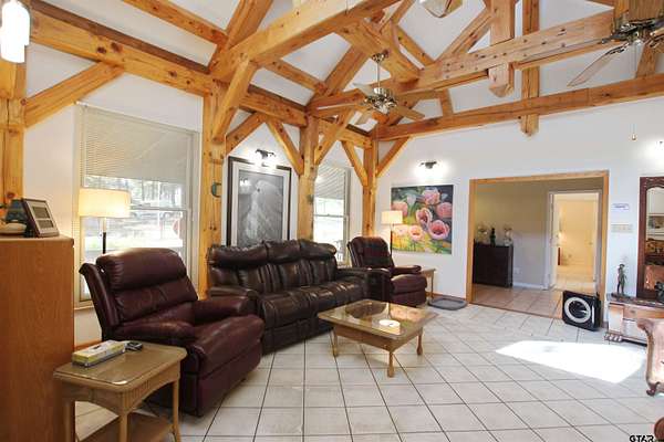 Welcome to this one-of-a-kind 2-bedroom, 2-bath home offering 1,962 square feet of inviting living space with a 2-car carport and craftsman’s workshop equipped with electric and gas, all set on 13.12 beautiful, ag-exempt acres in Texas. With thoughtful upgrades, a Generac whole-home generator, and a fully fenced property, this estate offers the perfect blend of comfort and functionality. As you enter through the gates, you’re welcomed by a prime open section of acreage where much of the groundwork has already been completed—utilities and a septic system are in place, making it ideal for a future guest house or multi-generational living setup. At the end of the road, the home greets you like a warm retreat with a welcoming front porch, landscaped yard, and charming walkways. Inside, exposed wooden beams, skylights, and abundant windows fill the space with natural light. The main living area flows into a well-equipped kitchen with a wine rack, ample cabinetry, and generous counter space, while a second living area offers additional flexibility and backyard access—perfect for a game room, sitting area, or hobby space. Both bedrooms are nicely sized with easy access to bathrooms. The primary suite feels like a private retreat with high ceilings, large windows, and a spacious bath featuring abundant storage, a built-in vanity, and a walk-in shower. Outside, enjoy a large back porch, fenced yard, a scenic spring-fed pond, RV parking with 50-amp service, and additional storage. The property also includes a 6-acre pasture within the 13.12 acres, offering excellent space for livestock, recreation, or future use. With its acreage, versatility, and peaceful setting, this property is the perfect place to enjoy country living with room to grow.