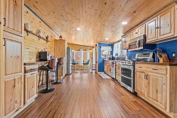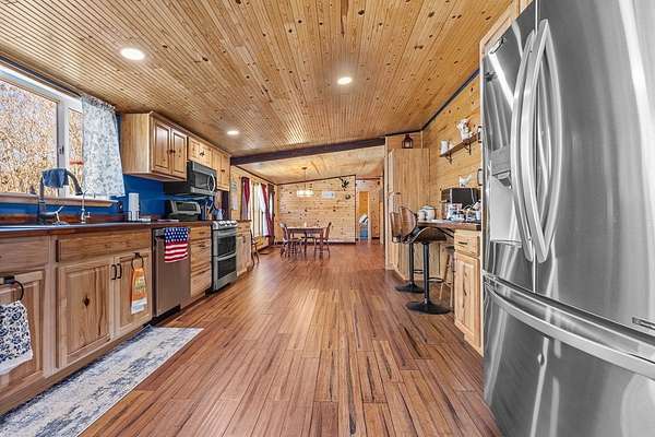 Beautifully remodeled 3-bedroom, 2-bath home offering peaceful country living with all the modern updates and rustic charm. Step inside to find warm pine walls and an upgraded ceiling that create a cozy, inviting atmosphere throughout. The kitchen is a true standout, featuring beautiful custom wood countertops that add character and style, while the spacious master suite boasts a large walk-in shower designed for comfort and relaxation. This home also features a durable metal roof, steel log siding, new plumbing, newer A/C, updated windows, and many additional upgrades throughout, giving you peace of mind for years to come. Relax and unwind on the large front porch or enjoy quiet mornings and evenings on the covered back porch overlooking the spacious property. The property is well-equipped with two carports, two garages, and a large 1632 storage building, providing plenty of room for vehicles, boats, tools, and all your outdoor toys. Conveniently located just a short drive from the Suwannee River, nearby natural springs, and the Gulf, you'll have easy access to fishing, boating, and scalloping. This property offers the perfect blend of country privacy, modern upgrades, and outdoor lifestyle living. Call today to schedule your personal tour!