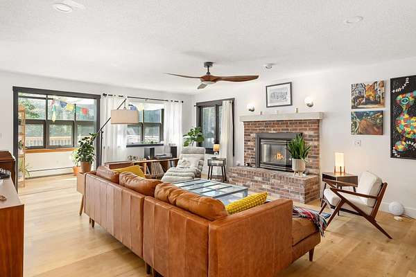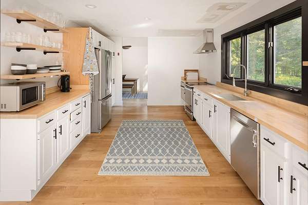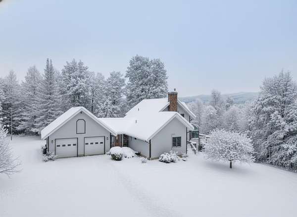 Newly renovated and tailored for winter living, this 3-bedroom, 3-bathroom home offers 3,403 finished square feet across three thoughtfully planned levels. Set well back from the road on 6.59 private acres, it feels like a quiet retreat in the woods--yet you're just 7 minutes from Stowe Village and about 20 minutes to the slopes at Stowe Mountain Resort. Step inside and leave the cold behind. Soaring ceilings and abundant natural light create an immediate sense of openness, while high-end finishes and a practical layout make every room both beautiful and functional. Modern mini-split heat pumps, radiant heat, and a gas fireplace work together to keep the home exceptionally warm and comfortable through the coldest months. The primary bedroom en-suite occupies the entire top floor, providing a true sanctuary after a day on the mountain. Enjoy peaceful views and a recently renovated bathroom featuring a luxurious soaking tub and oversized walk-in shower--perfect for unwinding apres-ski. This property offers the best of both worlds: complete privacy on your expansive 6.5-acre estate, with room to snowshoe, sled, or simply enjoy the quiet of a Vermont winter, while remaining close to all the area's amenities. Medical facilities and additional shopping and dining in Morristown are just 10 minutes away, making this an ideal year-round base for enjoying everything a Stowe winter has to offer.