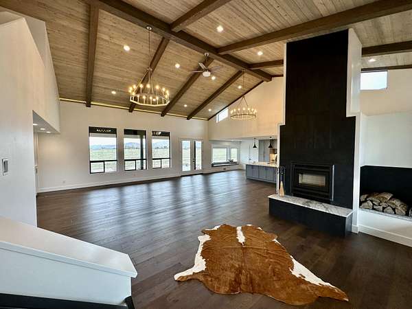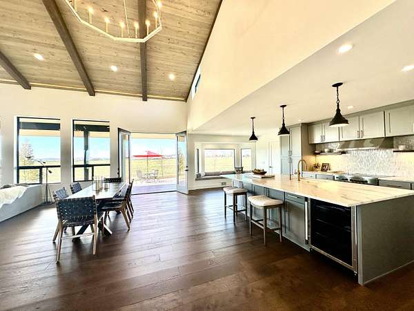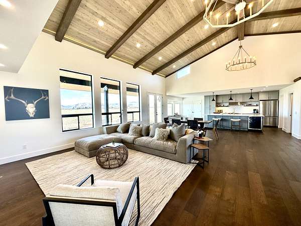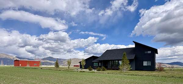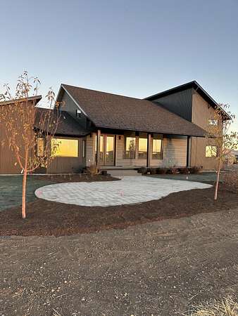 Discover serenity in this stunning 4-bedroom, 3-bathroom mountain modern retreat, just minutes from the renowned Sun Valley Ski Resort! The beautifully designed open floor plan with 20-foot cathedral ceilings invites abundant natural light, creating an airy atmosphere. The chef's kitchen features an extra-large quartz island, perfect for entertaining. Outside, the paver terrace offers opportunities for outdoor dining while soaking in the 360-degree views, stunning sunsets, and 20 acres of private surroundings. The property also includes 1883 water rights, Trex decking, green solar paneling, new irrigation, and a spacious heated 2000 SF workshop for all your recreational equipment. Allura siding makes this home maintenance free