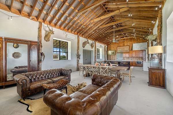 Just minutes from the heart of Round Top, this exceptional 10-acre property offers a picturesque escape with sweeping meadows and a stocked pond. The 3,956 sq ft main residence features travertine floors throughout, four bedrooms each with a beautifully appointed en suite bath, and a chef?s kitchen with quartz countertops, a grand island, and French doors that open to a charming courtyard. A sculptural staircase leads to a second-level game room and a third-level perch with panoramic views of the surrounding countryside. Outdoors, a sparkling pool is enhanced by a stylish pool house and a thoughtfully crafted party barn with a kitchen and guest suite?perfect for hosting friends or relaxing in comfort. Nestled on an exceptional Round Top road and facing expansive pastureland, this serene retreat offers timeless appeal just moments from Round Top.