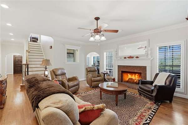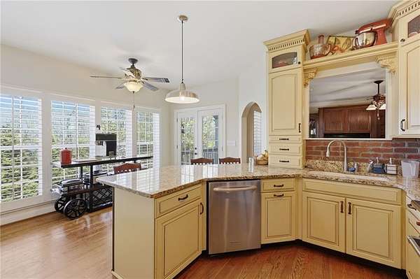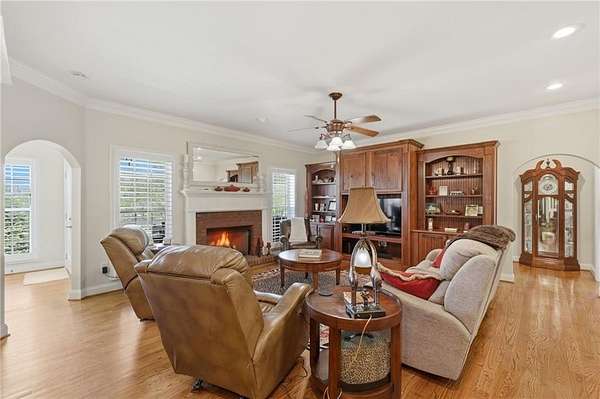 Located on a quiet cul-de-sac in the highly desirable Gold Cove community of Dahlonega, this exceptional home offers the perfect blend of luxury, comfort, and functionality. This home has beautifully maintained landscaping, complete with a full irrigation system, and is brick with concrete siding. Inside, the home features an oversized master suite on the main level, with separate custom his-and-hers closets. The master suite opens onto a large screened porch, and separate rear entrance. The main level also includes a secondary bedroom and full bath, and an office with its own fireplace-ideal as a workspace, cozy den, or even an additional bedroom. This home has a kitchen outfitted with custom cabinetry and high-end commercial-grade appliances, including a Wolf gas stove with four burners and dual grills and a pot filler, as well as a Sub-Zero refrigerator-perfect for both everyday living and entertaining. There is also a double-door custom crafted pantry. Upstairs, you'll find a massive 900-square-foot bonus room complete with a full bath, offering endless possibilities as a guest suite, media room, workout room, or private retreat. Additional highlights include beautiful true hardwood floors, plantation shutters throughout, on-demand hot water, whole house generator, abundant storage space, and a detached oversized four-car garage-providing ample room for vehicles, hobbies, or workshop needs. This one-of-a-kind property combines timeless elegance with modern conveniences, all in a sought-after location just minutes from the charm and amenities of downtown Dahlonega. *Priced well below recent appraisal!*