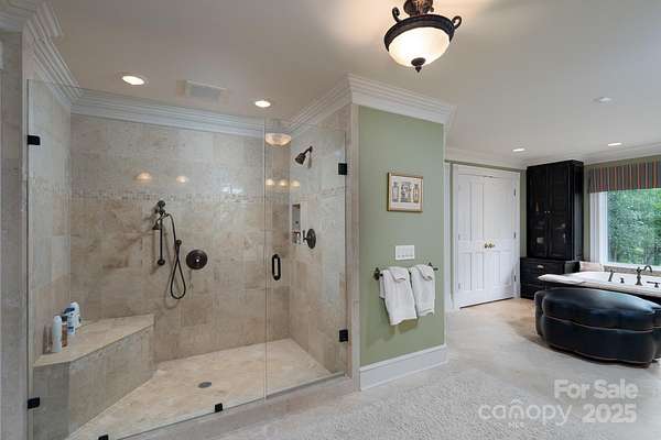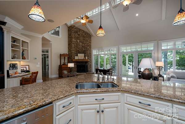 Welcome to this truly spectacular lakefront dream home in the sought-after Old North State Club community! Enter onto the property via the private, wooded circular drive to be wowed. The attention to detail in this exquisite home is unmatched. The chef's kitchen with state-of-the-art appliances is open to a spacious Great Room with stacked stone fireplace and unique roofline designed to let in maximum natural light. The elegant primary includes fireplaces in the bedroom as well as the adjoining light-filled study and an incredibly lavish bath. Outdoor entertaining couldn't be easier on the gorgeous back porch with custom stone built-in grilling station, but the circular screened-in porch with panoramic lake views steals the show. Plenty of storage, a full laundry room and an attached garage for convenient parking. Walk down the paver path to your private pier to take advantage of all the water activities Badin Lake has to offer and join the Old North State Club for championship golf, dining, courts, pools and much more.