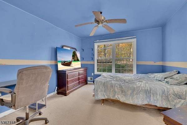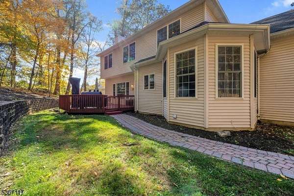 Just minutes to Mt. Olive High School, Rt. 206, shopping and dining is this wonderful colonial on a quiet dead-end street in Flanders. Situated on 2.25 private and wooded acres, this home features a two story entry foyer, 9' ceilings on first floor, 1st floor office (or formal living room) with hardwood flooring, family room with wood burning fireplace, bookshelves and cabinets. Kitchen features walk-in pantry, cherry cabinets, granite countertops, center island, breakfast area surrounded by windows, offering natural light, first floor laundry and formal dining room, as well as 1st floor powder room. Second floor offers primary suite with walk-in closet, recessed lighting and full bath with soaking tub and stall shower. Spacious additional bedrooms and full bath complete the level, as well as convenient walk-in attic storage! Full, finished basement has storage room and closets, gym area and additional office. Multi-zone HVAC, central air, thermal pane windows, heated inground pool, excellent schools, 5 minutes to Rt. 80 and so much more! House is in need of cosmetic TLC - carpeting/flooring, paint, etc., home being sold as-is with no known major defects.