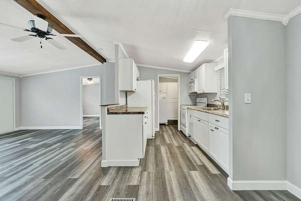 Step into this newly remodeled 3-bedroom, 2-bath home offering 1,152 square feet of beautifully refreshed living space. Inside, the open-concept layout creates a seamless flow from the living area to the kitchen and dining spaces, showcasing updated finishes and a modern feel throughout. The kitchen features ample cabinetry and counter space, while the primary suite provides a comfortable retreat with its own full bath. Two additional bedrooms offer versatility for guests, a home office, or hobbies. Outdoor living shines here with a massive screened-in back porch, perfect for relaxing, entertaining, or enjoying quiet mornings in a private, wooded setting. The home also features a spacious front porch-ideal for greeting guests or unwinding at the end of the day. The surrounding yard offers plenty of room to enjoy the outdoors while maintaining a strong sense of privacy and seclusion. With its thoughtful updates, inviting layout, and exceptional outdoor spaces, this home delivers outstanding value for buyers seeking comfort, functionality, and peaceful living all in one.