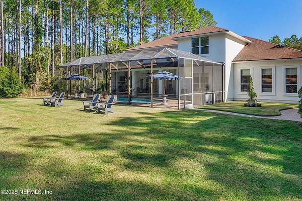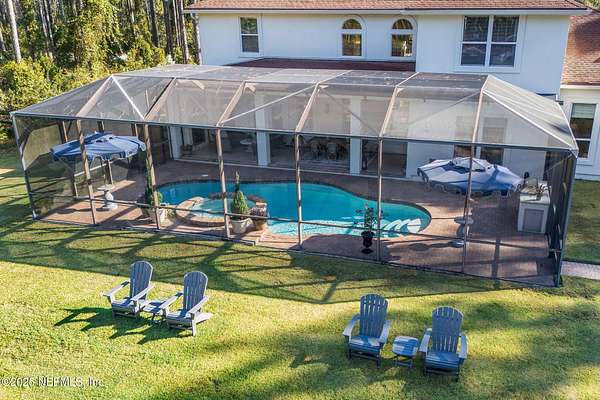 Introducing a modern expression of estate living within Equestrian Way at Whitelock Farms-effortlessly refined across 5.73 private, gated acres. Commanding nearly 4,000 square feet of refined interior living space, complemented by serene outdoor spaces, additional private in-law living, and charming barn and chicken coop, this remarkable residence offers a true sanctuary for the most discerning buyer. Past the gated entrance and manicured lawn, the stately exterior design welcomes you to the immaculately maintained residence. Inside, grand vaulted ceilings, open living spaces, and elegant finishes provide an atmosphere of effortless luxury. Downstairs features a grand foyer entry, the primary suite and accompanying en-suite, complete with custom closets. Downstairs also features a formal dining space, gourmet kitchen, and primary living space with sweeping views of the pool and pastures. The kitchen and living room serve as the heart of the home, with ample natural light, perfect for both intimate gatherings and elevated hosting. Estate living and entertaining are all the more so enjoyed outside, poolside under the covered lanai with ample seating, fireplace, and outdoor kitchen. The views are nothing short of picturesque-pool and spa, pasture, barn, and equine or animal companions (should you desire) perfectly framed by the lush tree-lined backdrop. With five bedrooms and three-and-a-half baths in the primary residence alone, the home offers expansive accommodations. Upstairs you will find four ample sized bedrooms, two full baths, all conveniently arranged in a split layout, connected by a catwalk. All rooms offer sweeping pasture and lawn views. The detached in-law suite complete with a full bath, closet and its own garage space, is the perfect space for multi-generational living, office, gym, or whatever you envision. With 5.73 usable acres, the acreage offers endless possibilities, whether for additional pastures, expanded equestrian facilities, or future enhancements tailored to your vision. With plenty of acreage left untouched for privacy, there is ample room to accommodate future additions-whether that be a sports court, car storage, additional pasture space, and the like. The charming barn features three 12x12 stalls with runouts, a dedicated tack room, and easy access to the surrounding pastures. Along the right perimeter of the property, there is a second gated entry point for easy access to the barn and rear of the property for hay or supply deliveries. Residents of Whitelock Farms enjoy access to community equestrian amenities, including maintained bridle trails, multiple riding arenas, and shared training spaces offering an immersive equestrian lifestyle surrounded by both nature and community. There are dressage, hunter/jumper arenas (fenced options with footing and jumps in large grass fields), round pen for exercise lunging, and a space to pattern barrels. Footing is regularly dragged, and trails are maintained. There is a designated path with the option to trailer to the many multi-discipline arenas. Additional details include all fencing has been freshly painted black (Nov. 2025), new roof will be installed on both the main home and detached in-law suite (or credit offered), new septic installed 2024, newer AC units (2-3 years), pool pump (4 years), hot water heater (2025), barn (2022), outdoor kitchen (2024), and porch gas fireplace (2023). The residence is immaculately maintained. A residence of this caliber is a rare offering. Experience all this property has to offer for yourself with a private showing.