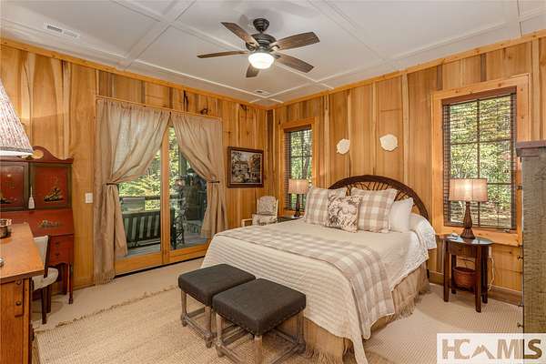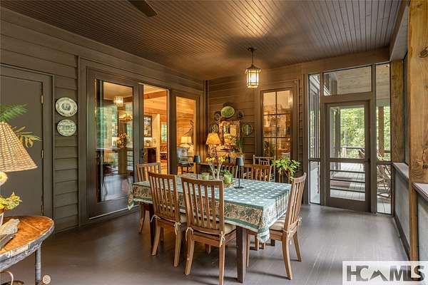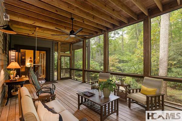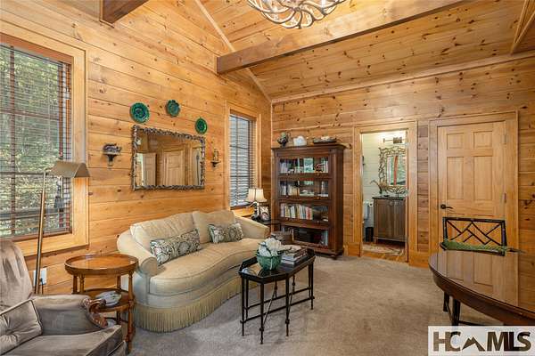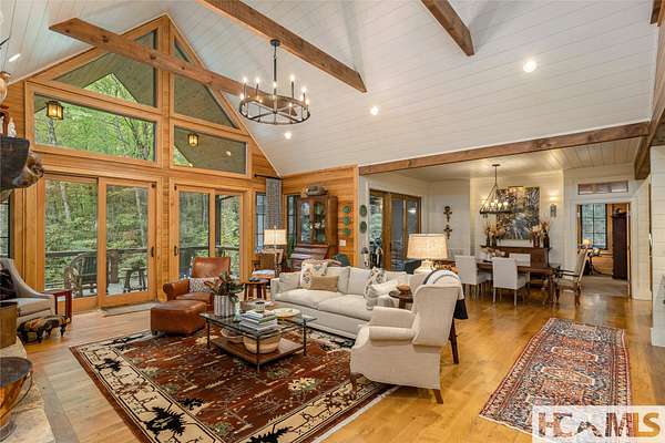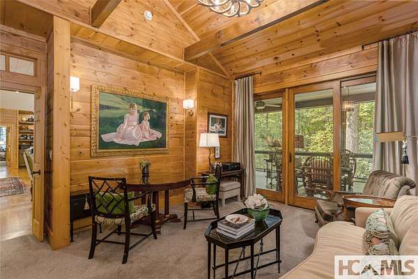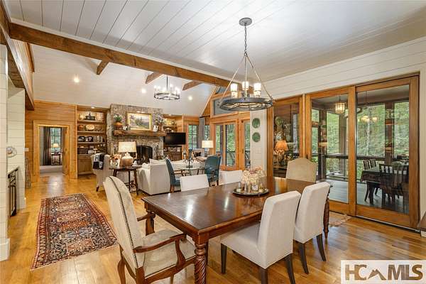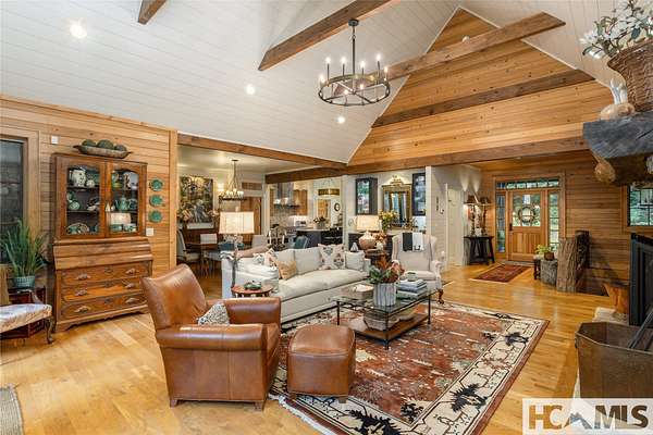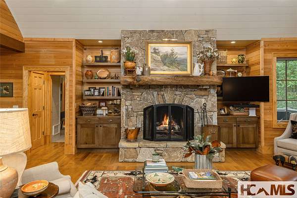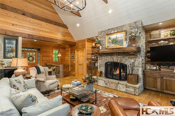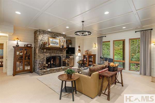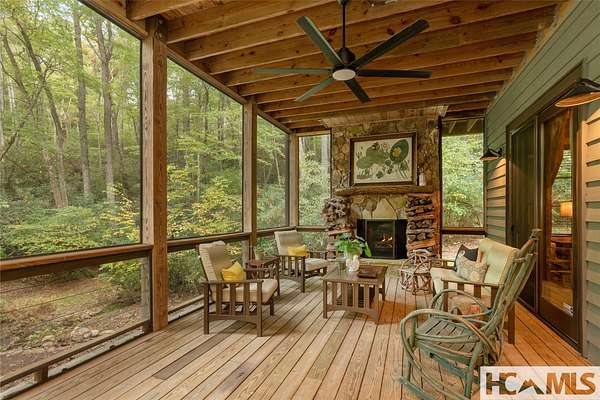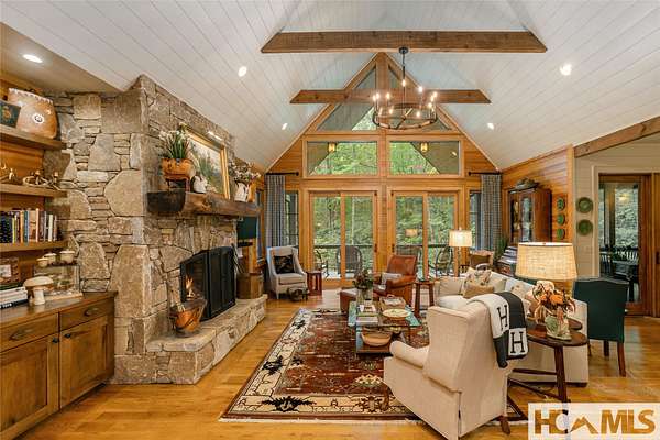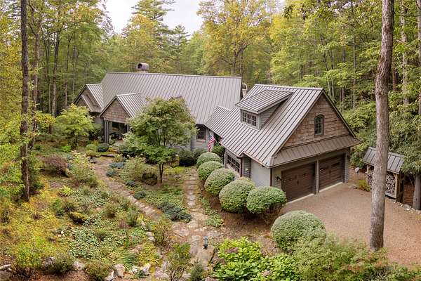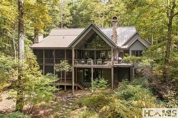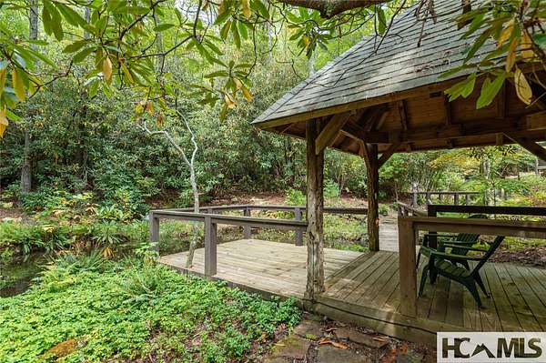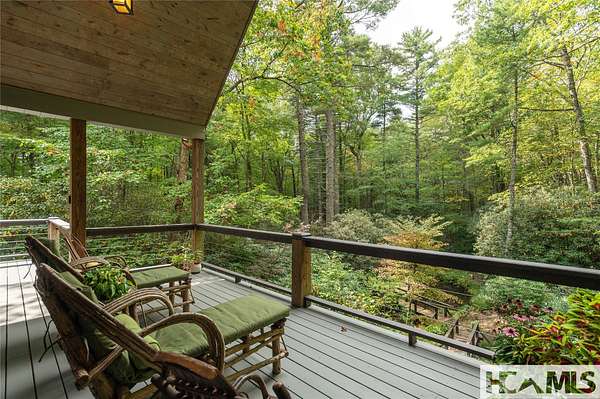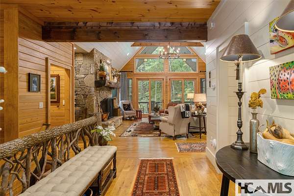 Experience the perfect blend of luxury, privacy, and natural beauty at 139 Foxglove Trail. Nestled on a nearly five-acre double lot, this extensively renovated home offers seclusion and convenience. It's truly an oasis surrounded by the sights and sounds of nature in a private forest, conveniently located less than 3.5 miles from the Cashiers crossroads. The interior features beautiful wood detailing on every wall and ceiling, creating a warm, elegant ambiance that is free from drywall. The chef-inspired kitchen features an impressive 8-burner gas cooktop and flows seamlessly into the dining and living areas, perfect for entertaining friends and family. The main living space offers soaring windows, a masonry fireplace, and a full wet bar, complete with a small refrigerator and a wine cooler. Also on the main level, the luxurious primary suite features two large closets, a soaking tub, a steam shower, and a towel warmer. At the opposite end of the house is another ensuite bedroom. The lower level offers a second living space, bar area, two additional bedrooms with bathrooms, and abundant storage. The space above the oversized two-car garage has been transformed into a bonus room that includes a full bathroom. Additional upgrades include a new standing seam metal roof in 2024, a whole-house generator in 2022, a dehumidifier, and three tankless water heaters. With four masonry fireplaces - two indoors and two outdoors - this home radiates richness and comfort year-round. From both levels, step outside to expansive screened porches and open deck space, overlooking a beautiful stream-fed pond. For a closer look, meander over several bridges to the viewing deck and pavilion down below, which provide the perfect setting for morning coffee and meditation or an evening libation. Don't miss this rare opportunity to own a home that combines refined living with natural tranquility.