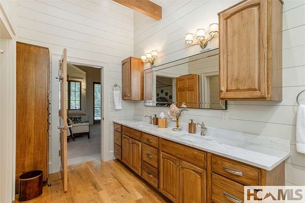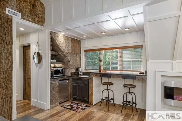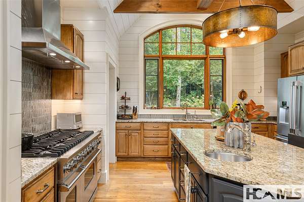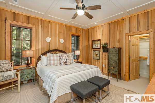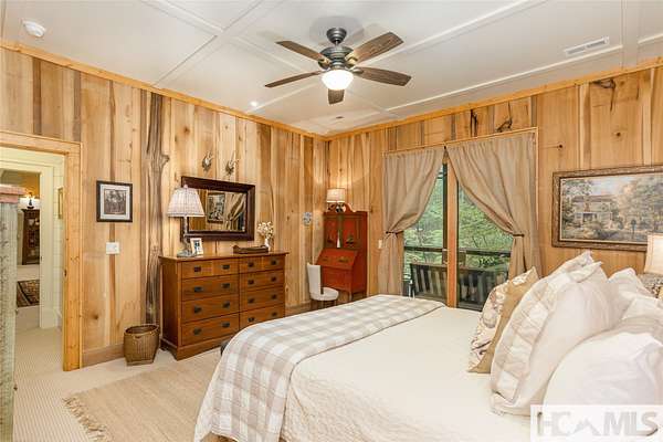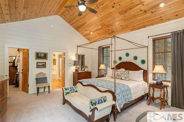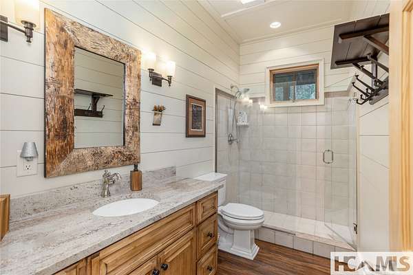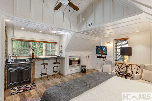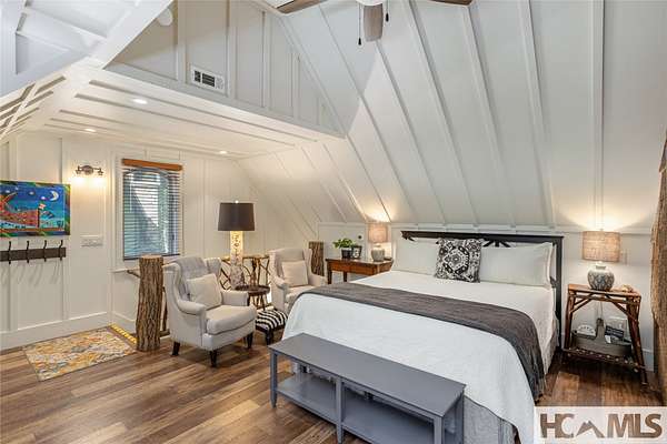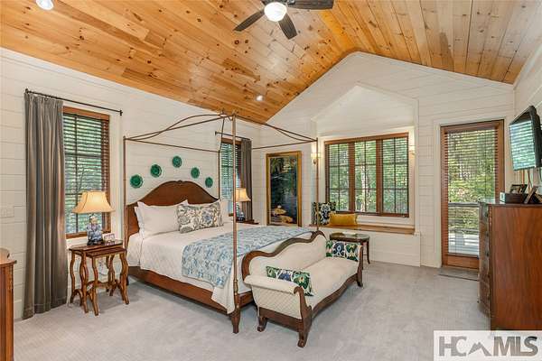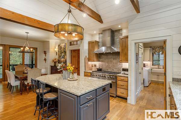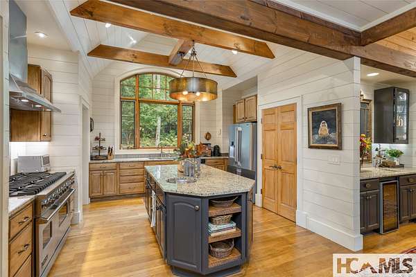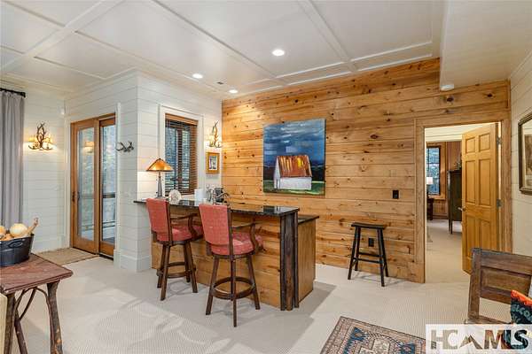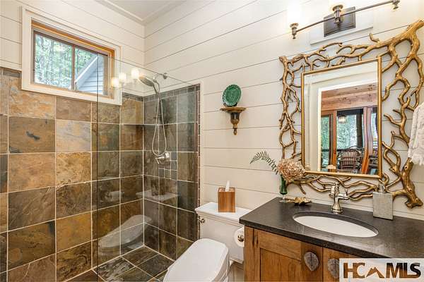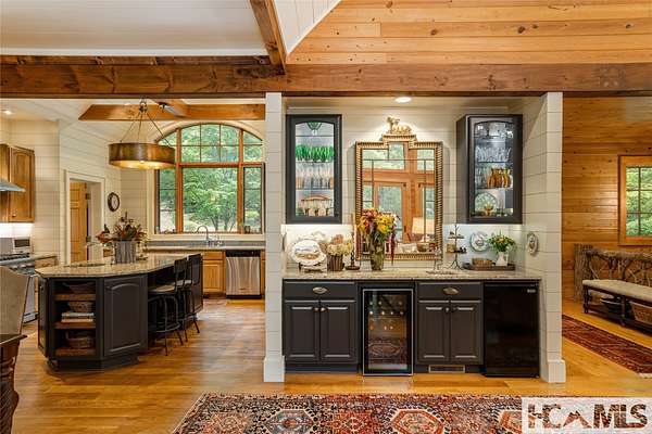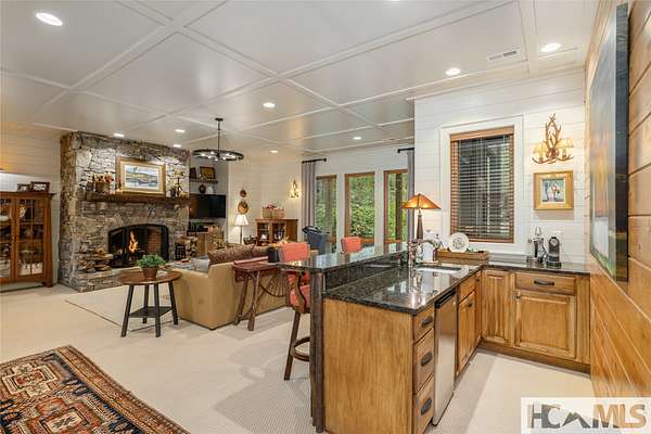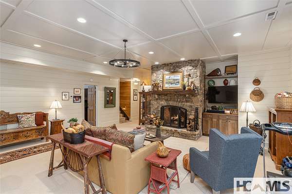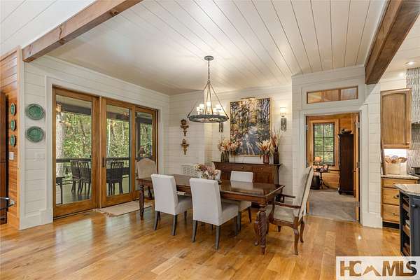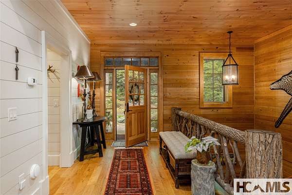 Experience the perfect blend of luxury, privacy, and natural beauty at 139 Foxglove Trail. Nestled on a nearly five-acre double lot, this extensively renovated home offers seclusion and convenience. It's truly an oasis surrounded by the sights and sounds of nature in a private forest, conveniently located less than 3.5 miles from the Cashiers crossroads. The interior features beautiful wood detailing on every wall and ceiling, creating a warm, elegant ambiance that is free from drywall. The chef-inspired kitchen features an impressive 8-burner gas cooktop and flows seamlessly into the dining and living areas, perfect for entertaining friends and family. The main living space offers soaring windows, a masonry fireplace, and a full wet bar, complete with a small refrigerator and a wine cooler. Also on the main level, the luxurious primary suite features two large closets, a soaking tub, a steam shower, and a towel warmer. At the opposite end of the house is another ensuite bedroom. The lower level offers a second living space, bar area, two additional bedrooms with bathrooms, and abundant storage. The space above the oversized two-car garage has been transformed into a bonus room that includes a full bathroom. Additional upgrades include a new standing seam metal roof in 2024, a whole-house generator in 2022, a dehumidifier, and three tankless water heaters. With four masonry fireplaces - two indoors and two outdoors - this home radiates richness and comfort year-round. From both levels, step outside to expansive screened porches and open deck space, overlooking a beautiful stream-fed pond. For a closer look, meander over several bridges to the viewing deck and pavilion down below, which provide the perfect setting for morning coffee and meditation or an evening libation. Don't miss this rare opportunity to own a home that combines refined living with natural tranquility.