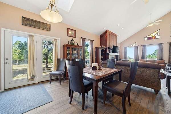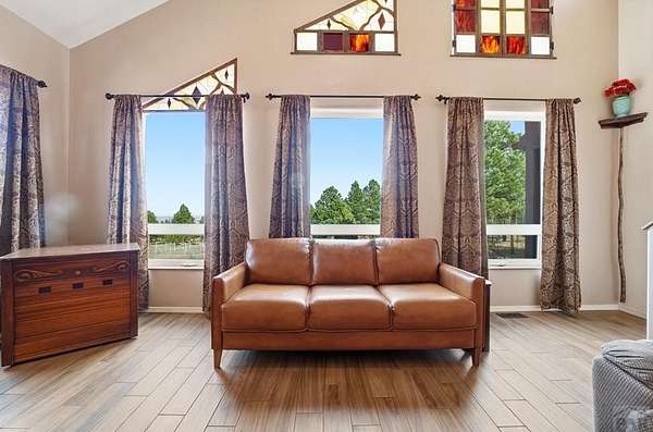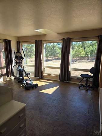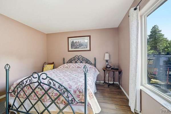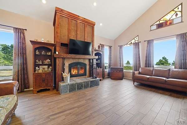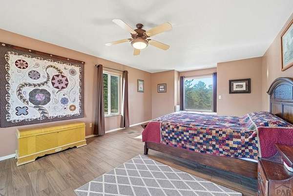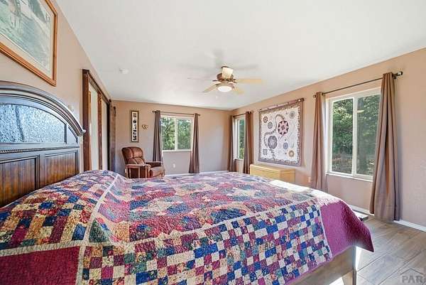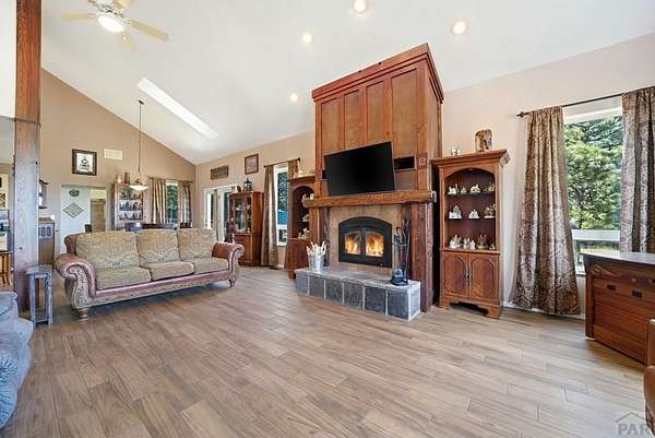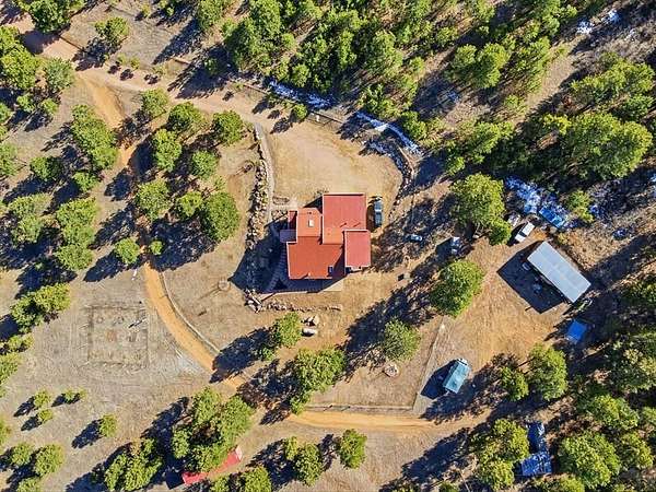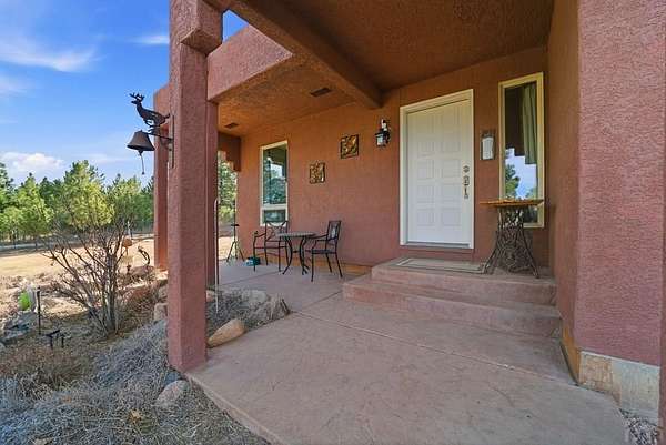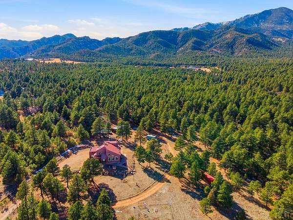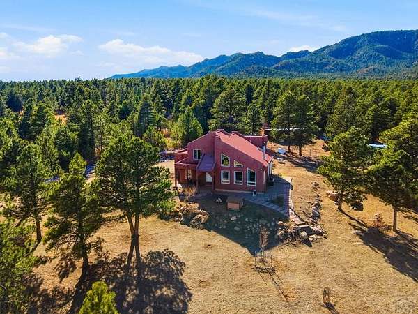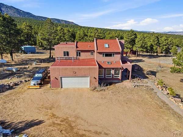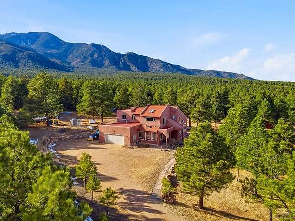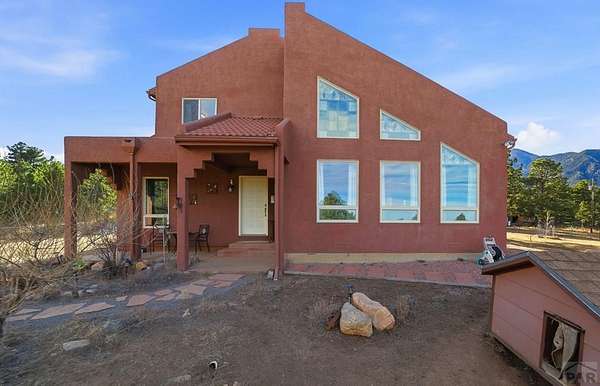 Breathtaking views of the Greenhorn Valley at the base of Greenhorn Mountain set the stage for this extremely well-maintained Spanish-style home on 35 wildlife-filled acres. This remarkable property offers privacy, beauty, and character in a stunning mountain setting. Step into the formal entryway and you're welcomed by rustic elegance. The great room is the heart of the home, with a custom fireplace crafted from Pecky Cedar and Ponderosa Pine, handmade stained-glass, abundant natural light, and wood-look ceramic tile. The open layout offers plenty of space for a large dining table. A glass door leads to the patio, where you can enjoy peaceful sunrises and take in the surrounding scenery. The kitchen provides generous counter space, custom cabinetry, and a built-in wine rack, making it functional and inviting. The main level also includes a nice sized bedroom, a guest bathroom, and a spacious laundry room with flexible space and a two car garage. Upstairs, you'll find another bedroom along with a private primary suite. The primary bedroom is generously sized with windows that frame the beautiful landscape. The en-suite bath features a walk-in shower, a relaxing garden tub, and a walk-in closet with built-ins. Outside, surrounded by towering Ponderosa Pines, is a woodworker's dream 16x40 shop. Numerous trails wind throughout your 35-acre property, or explore the nearby trailheads the area is known for. Don't miss this rare opportunity to own your own mountain retreat.