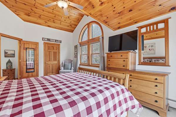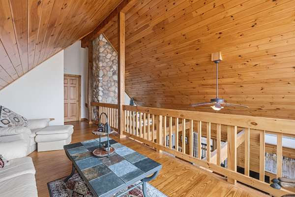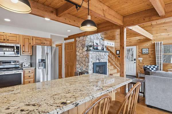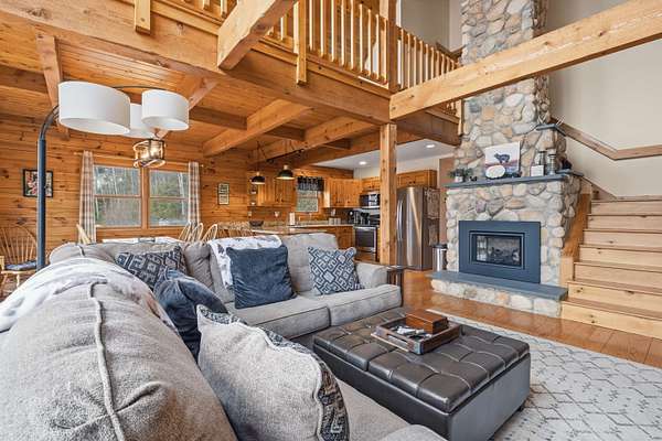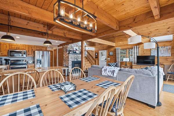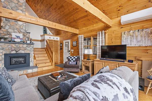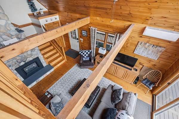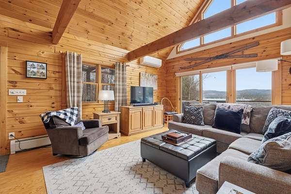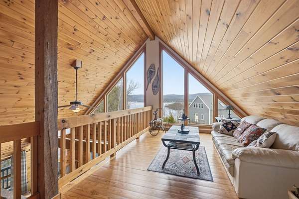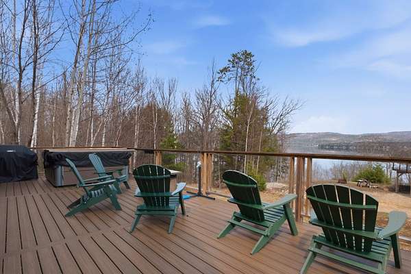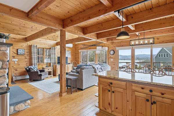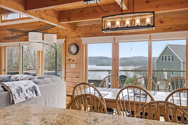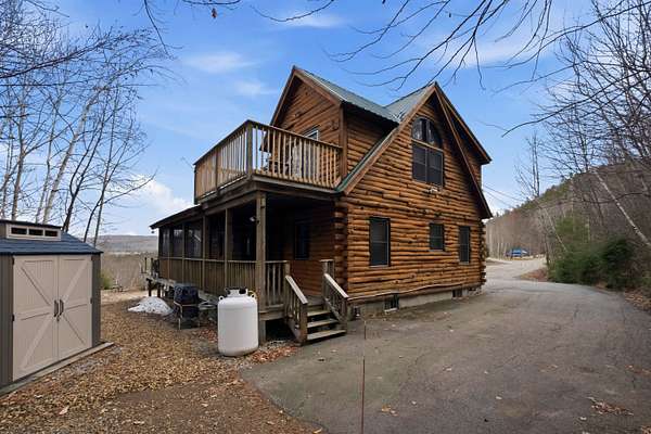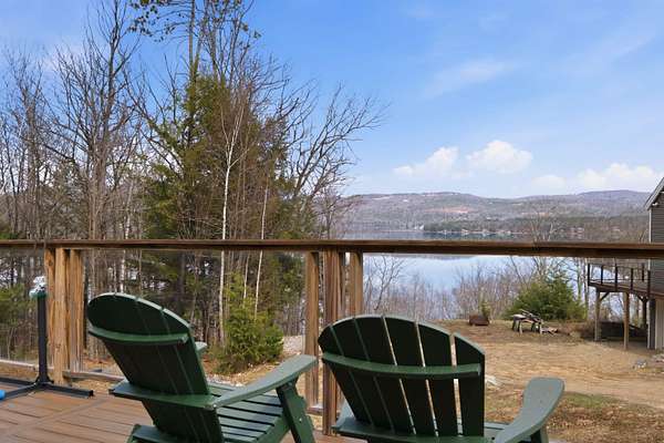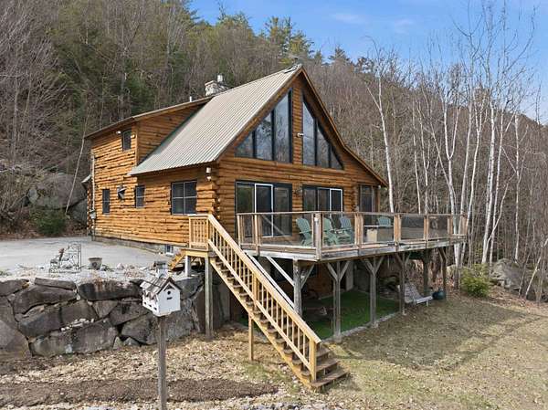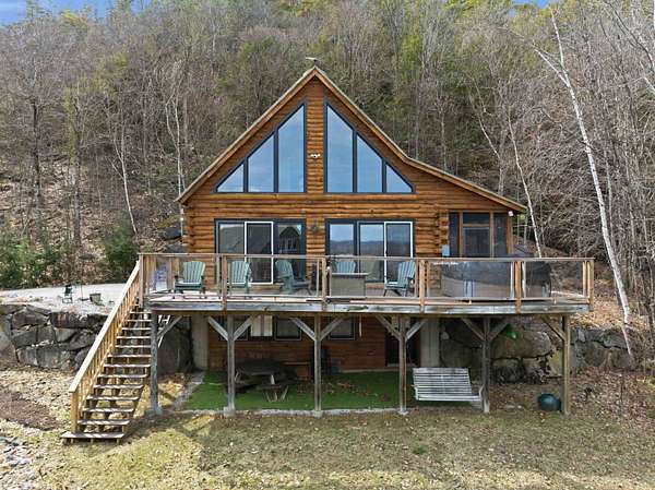 Views, views, views! Spectacular views Overlooking pristine Newfound Lake! This beautifully crafted log home offers a rare combination of privacy, character and scenic lake living. Built in 2002 and set on 5 wooded acres at the top of the hill on a cul-de-sac, this home provides a peaceful retreat with spacious interior living on 3 levels. There are 5 bedrooms (3 bedroom septic) and 3 bathrooms designed for comfort and flexibility. The 1st floor is an open floor plan w/vaulted ceiling living room w/stone gas fireplace, dining area and eat-in-kitchen w/granite countertops and peninsula breakfast bar. The wall of windows with 2 sliders lead out to a private 34'x14' deck with large hot tub and gorgeous views! Spacious Primary suite with wood vaulted ceilings, large walk-in closet and its own private deck overlooking a wooded setting, plus an attached on-suite 3/4 tiled floor bath. The sun drenched loft w/gleaming wood floors overlooks the first floor and offers sweeping lake views! Full finished walk-out basement w/spacious family room, game area w/ping pong table, wood stove, mini fridge and door to yard makes for great entertainment space! There are 2 additional bedrooms and a full bath. Utility room houses weil-mclain oil furnace, HW heater, well tank and washer/dryer combo. The large day dock is shared w/4 surrounding homes and enhances the lake experience w/ample room for kayaks, chairs and relaxing by the water. Warm wood finishes and timeless log home appeal create an inviting atmosphere throughout, while the elevated setting captures sweeping views of Newfound Lake and the natural beauty beyond. Ideal for year-round living or a private getaway, this exceptional home delivers the best of New Hampshire lake life in a serene and highly desirable location. Come make this beauty your new home! Quick close possible!