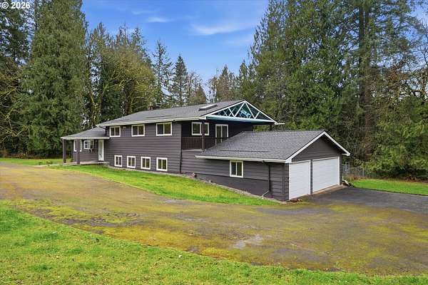 Tucked into the trees on just under two private acres, this tri-level retreat offers the perfect blend of peaceful seclusion and modern artistic style. Perched on a hillside and surrounded by nature, the setting feels like a quiet escape while still offering plenty of space to relax, entertain, and unwind. Thoughtful 2025 interior updates bring a playful, creative energy that makes this home feel anything but cookie cutter. Major system updates provide peace of mind, including a full home re-pipe and new windows installed in 2017, a new roof in 2022, and extensive interior remodeling completed in 2025. An oversized three car garage offers abundant storage, and the expansive lot provides room to build a future shop if desired. A rare opportunity to own a private retreat that blends space, style, and tranquility.