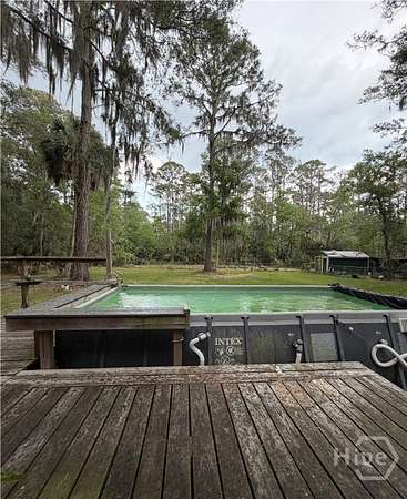 Hidden Gem! Burnside Island Living with secluded privacy! This is one-of-a-kind property's stand out feature is the expansive 3.98 acres providing plenty of space for outdoor activities. 3 Bedroom 2 Bath home features spacious kitchen, living room with fireplace and built in cabinets, large bonus area with wood burning stove. Home has a designated generator, with manual transfer switch on 8 circuits, crawlspace encapsulated with dehumidifier. Covered deck/ back porch, large fenced in yard, above ground pool, separate fenced garden area. Natural wooded acreage on back side of property adds to this peaceful retreat. Property boasts additional structures including 16 x 20 workshop, Double detached carport, detached small RV or Boat shelter. County Designated Golf Cart Community. Neighborhood playground & tennis courts conveniently located at Rio Vista on Burnside Island, with Skidaway Island State Park, public fishing pier, & public Boat ramp just a few miles away. It is an ideal setup for those who love nature and outdoor living.