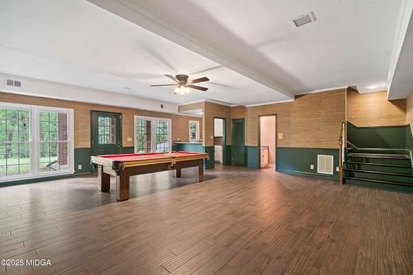 Jones County - River North Gated CommunityNestled on 3.52 private, riverfront acres in the highly desirable River North community, this spacious 3,472 sq. ft. brick home with a 2 car garage offers 4 bedrooms, 2 full bathrooms, and 2 half bathrooms.Step inside to find real hardwood floors throughout, a welcoming living room with a fireplace and wet bar, and a beautiful screened-in porch with secluded views overlooking the woods. The large basement features a fireplace, kitchenette and pool table, creating the perfect space for entertaining or relaxing with family and friends.Enjoy the convenience of a corner lot with river access and take advantage of the country club lifestyle--membership includes access to the community pool, tennis courts, fitness center, and 18-hole golf course.This well-loved home is only available due to a job relocation. Don't miss the chance to make it yours!