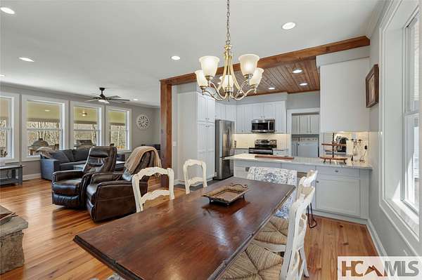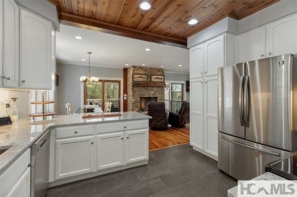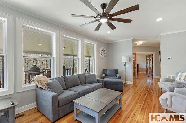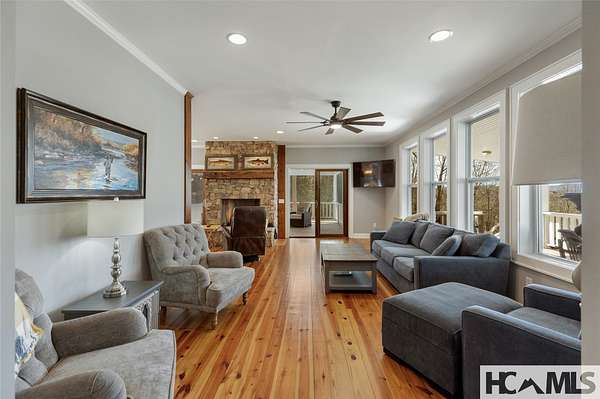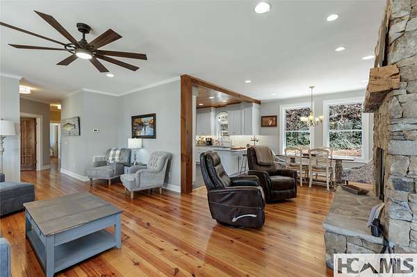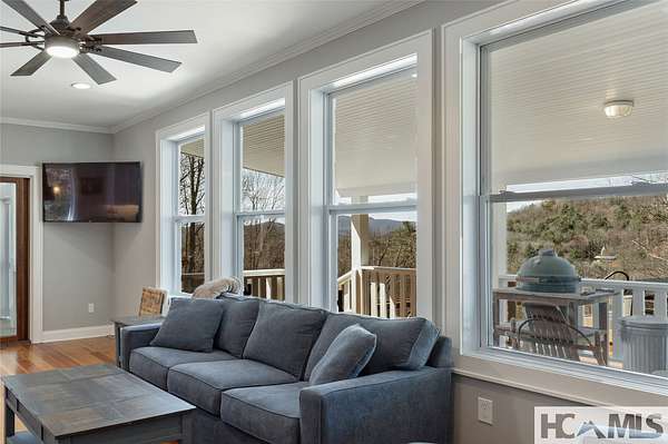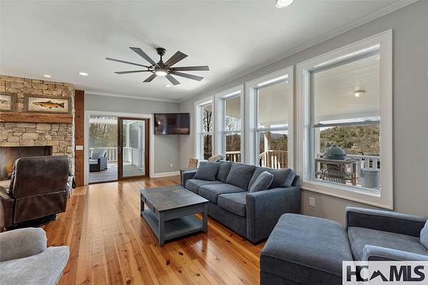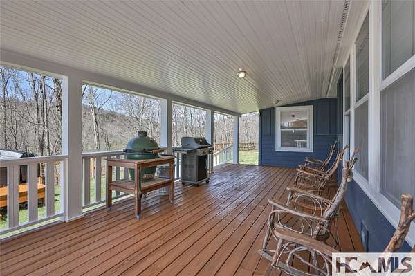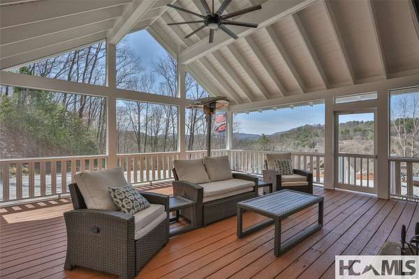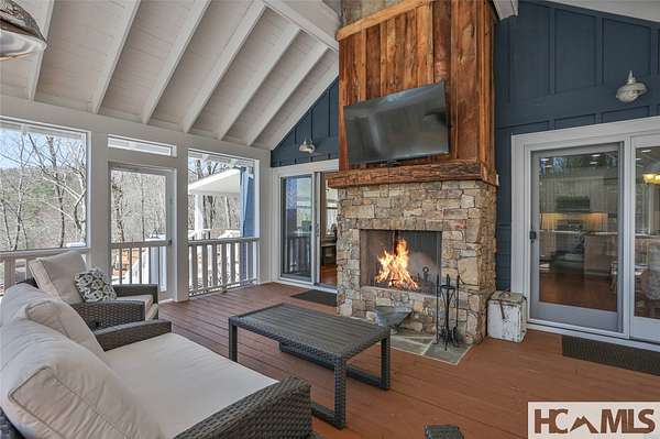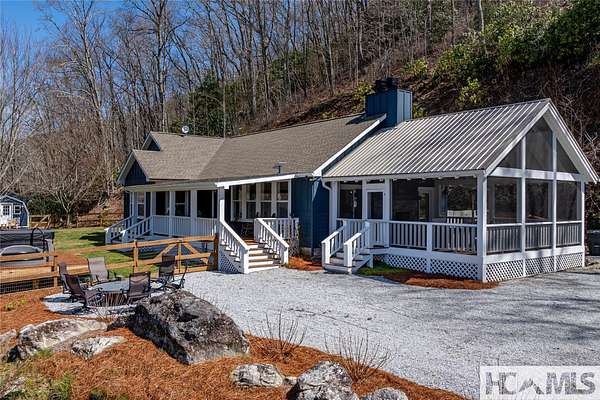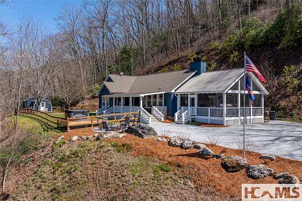 Discover a charming mountain retreat with stunning views on 4.73 unrestricted acres. Escape to this beautifully maintained, furnished, single-level mountain home, perfectly perched at approximately 3,850 feet of elevation. Offering breathtaking short- and long-range mountain views, providing the ideal blend of tranquility and convenience. As you arrive, you'll immediately notice the abundance of parking - perfect for hosting family and friends. Step out of your car, take a deep breath, and feel the day's stresses melt away as you take in the crisp mountain air and sweeping views. For pet owners, the level, grassy, fenced-in backyard is a dream, providing a safe space for your dogs to run and play. A gentle ramp leading to the front porch makes access easy, especially for senior pets. Inside, the bright, airy open floor plan seamlessly connects the kitchen, dining, and living areas, all flooded with natural light from the many windows. With all bedrooms conveniently located on the main level, this home offers effortless accessibility for everyone. The oversized primary suite features a spacious ensuite bath and generous closet, while two additional guest bedrooms provide ample space and share a well-appointed bathroom. Outdoor living is a highlight of this home, with 3 distinct entertaining areas. Enjoy your morning coffee on the covered front porch while soaking in the views, unwind on the private back porch, or gather with family and friends in the stunning screened-in porch-complete with a wood-burning fireplace, TV, and plenty of space for lounging and dining. Whether you're hosting a game night, savoring a delicious meal, or simply relaxing by the fire, this space is designed for making memories. The front yard offers even more possibilities, whether you want to let the dogs run, start a garden, set up your favorite yard games, or take a quick soak in the hot tub. Additionally, a combined storage shed provides a versatile indoor space, ideal for a workshop, artist studio, or creative retreat, complete with a mini-split system and wood-burning stove. Located just minutes from Lake Glenville, Signal Ridge Marina, Happs Restaurant, and downtown Cashiers, this mountain retreat offers both seclusion and convenience.