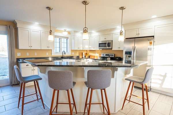 139 Wentworth Road in Berwick offers a flexible property with a spacious home, attached garage, and a well-equipped barn, making it suitable for a variety of residential, agricultural, or commercial uses. The kitchen features white shaker cabinets, dark quartz countertops, stainless steel appliances, and a large curved island with seating. The adjacent living area includes a stone hearth with a wood stove and reclaimed wood accent wall. The main level also includes a formal dining room with hardwood floors and a bay window, a primary bedroom with hardwood floors and multiple windows, and a full bathroom with a double vanity, glass-enclosed tile shower and laundry. There is also an additional bathroom with heated floors just inside the door, perfect for cleaning up after a long day working on the farm. Upstairs are additional bedrooms, a large finished bonus room, sloped ceilings, and exposed brick chimney details. The home also includes three masonry chimneys and a whole-house generator. The attached garage is a heated and cooled 3-plus-bay space with room for vehicles, storage, hobbies, or workshop use. The barn includes heat, 400-amp electrical service, water with two sinks, and access to a second well. The property is commercially zoned and also offers fenced areas for livestock and open space with wide views. This property combines original character with practical updates and infrastructure that support a wide range of uses. For more information or to schedule a showing, call The Zoeller Group or email.