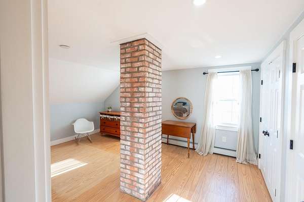 139 Wentworth Road in Berwick offers a flexible property with a spacious home, attached garage, and a well-equipped barn, making it suitable for a variety of residential, agricultural, or commercial uses. The kitchen features white shaker cabinets, dark quartz countertops, stainless steel appliances, and a large curved island with seating. The adjacent living area includes a stone hearth with a wood stove and reclaimed wood accent wall. The main level also includes a formal dining room with hardwood floors and a bay window, a primary bedroom with hardwood floors and multiple windows, and a full bathroom with a double vanity, glass-enclosed tile shower, heated floors, and laundry. Upstairs are additional bedrooms, a large finished bonus room, sloped ceilings, and exposed brick chimney details. The home also includes three masonry chimneys and a whole-house generator. The attached garage is a heated and cooled 3-plus-bay space with room for vehicles, storage, hobbies, or workshop use. The barn includes heat, 400-amp electrical service, water with two sinks, and access to a second well. The property is commercially zoned and also offers fenced areas for livestock and open space with wide views. This property combines original character with practical updates and infrastructure that support a wide range of uses.