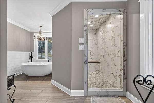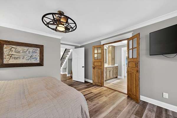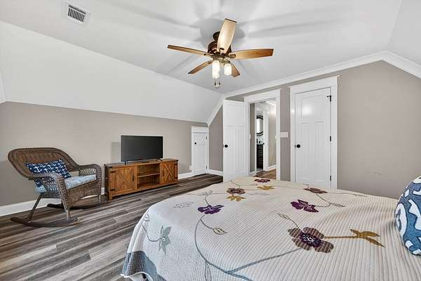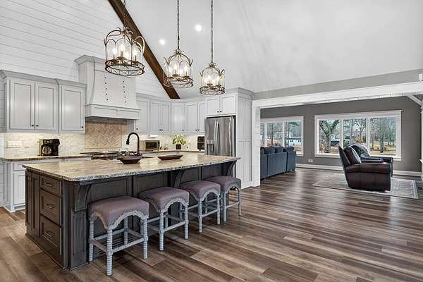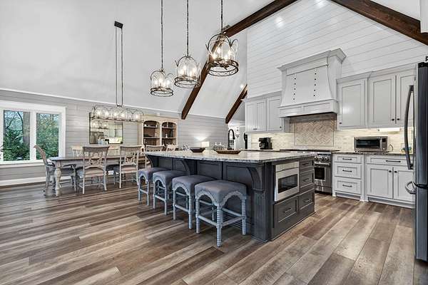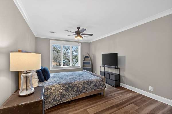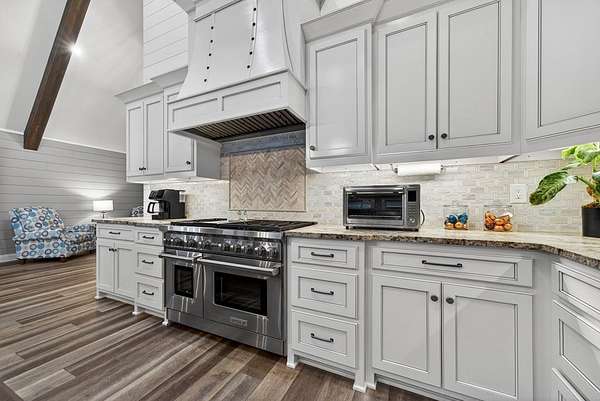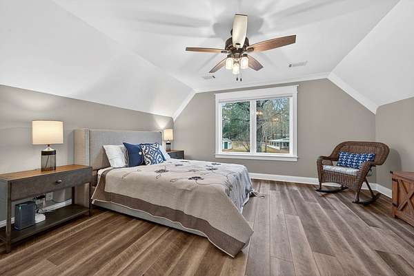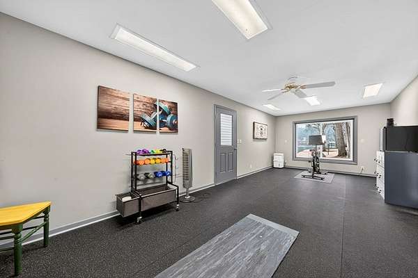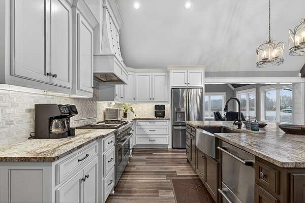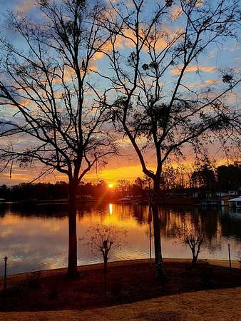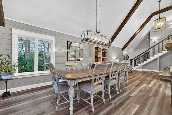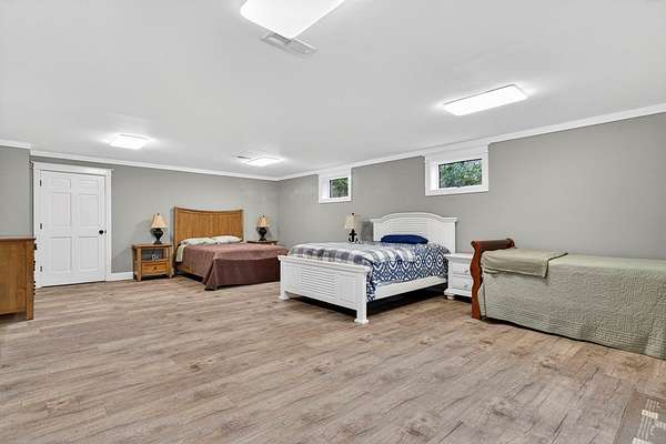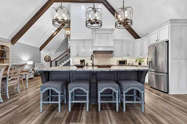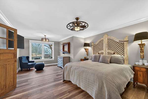 Exceptional lakefront living on a rare fee-simple point lot in the highly sought-after Crooked Creek area of Lake Sinclair. Surrounded by water on multiple sides, this stunning property offers approximately 431 feet of shoreline, deep water averaging 8+ feet, and a sandy beach area, creating the ultimate setting for year-round lake enjoyment. This beautifully appointed 4-bedroom, 3.5-bath home has recently received a striking exterior refresh and is enhanced by professionally designed luxury landscaping, delivering a refined, private, resort-like feel from the moment you arrive. A comprehensive renovation in 2019 included new plumbing, HVAC, roof, Pella windows and sliding doors, custom cabinetry, countertops, doors, trim, and premium finishes throughout. The gourmet kitchen anchors the main living space and features a 48-inch Wolf six-burner range with griddle and dual ovens, a Sharp microwave drawer, and high-end appliances, flowing seamlessly into spacious living and entertaining areas. The terrace level has been further improved with newly renovated ceilings, adding to the home's polished and updated appeal. Outdoor living is exceptional, with fenced front and back yards, gated entry, security system with cameras, irrigation system, and an enclosed double boathouse with an additional open dock. Right by the boathouse, a separate finished home gym provides a dedicated wellness space featuring a large picture window with tranquil lake views. A private boat ramp allows easy launching for family and guests. This is a rare opportunity to own a fully updated, meticulously