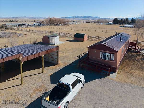 Looking for a small horse property or hobby farm? Located just outside of Dillon, this three-bedroom, two-bath residence offers peaceful rural living framed by sweeping views of the Pioneer Mountains and surrounding countryside. Set on 1.76 acres with ample space for animals, the property combines comfort, functionality, and privacy at the end of a quiet lane. The entrance to this 1152 sf home features both a ramp and traditional stair access leading to a spacious deck-an ideal vantage point to enjoy the expansive country views. A large gravel driveway provides convenient access and generous parking. Inside, the well-designed floor plan offers a spacious living room and kitchen area complete with a cozy wood stove for winter warmth. The primary suite includes a walk-in closet and private bath and is situated opposite the two guest bedrooms and additional full bathroom for added privacy. Designed with versatility in mind, the property includes horse pens and four-stall metal multi-purpose building efficiently configured to serve as a hay barn, horse shelter, and garage under one roof. The grounds include two additional storage sheds and a greenhouse for gardening enthusiasts. A rare opportunity offering flexibility and freedom-this property is notably free of covenants.