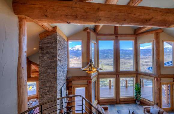 The Mountain View lies in the gated Raspberry Mountain Ranch subdivision off Colorado Highway 12, the state-designated Scenic Highway of Legends. The elevation of 7,900+- feet tends to have a great mix of milder winters and cooler summers. Views from almost every room in the house are dramatic and offer an angle of view seen by only a few lucky souls. The spacious home has four bedrooms but could be expanded to five or six. There are three bathrooms, including the well-appointed primary ensuite bath that, with the bedroom, enjoys its own floor of the house. A central gathering room gas fireplace compliments the study's wood-burning kiva-style fireplace. The log exterior has recently been restored and re-chinked. The deck has been replaced with a maintenance-free synthetic surface. Previous owners have had horses. Though there are no existing equestrian facilities, it is permitted. Elk, mule deer, and various wildlife are frequent visitors to the property.