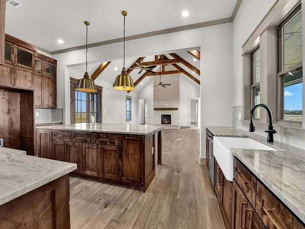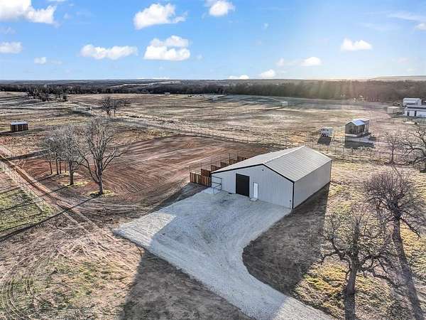 An exceptional opportunity for buyers seeking acreage, modern comfort, and purpose built horse facilities. Nestled on 10 acres, this newly constructed gated estate includes a luxury 4 bedroom main home, a fully independent 2 bedroom guest house, and a 2,400 sqft barn with 5 stalls. Inside the foam-encapsulated main home, you will find a massive chef's kitchen open to the large living area that is adorned with wood beams. The kitchen island will seat 6 comfortably! The master suite features his and her closets, wood beams in the bedroom as well as direct access to the Texas sized back porch. A short walk will take you to the remodeled guest house that has 2 bedrooms, a full bathroom, as well as a second shower in the laundry for pets or those dirty boots! The highlight of this stunning property is the beautiful, fully functional, 10 acres! Inside the 2,400 sqft barn you have a built in tack room and feed storage as well as access to the 5 oversized stalls with automatic waterers. There are currently 3 large turnouts with automatic waterers and loafing sheds as well as a 200x200 riding area with excellent dirt! The large gravel drive makes for easy trailer turnaround and there is a clear line of sight from either home to the barn. Whether you're a private horse owner, multi-generational household, or an investor seeking a turnkey equestrian rental, this property delivers unmatched versatility and value.