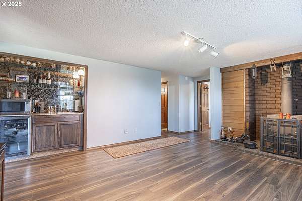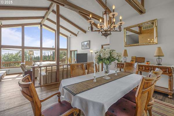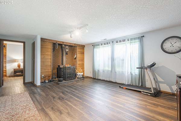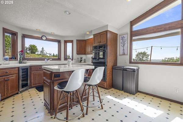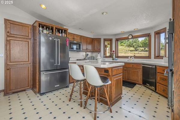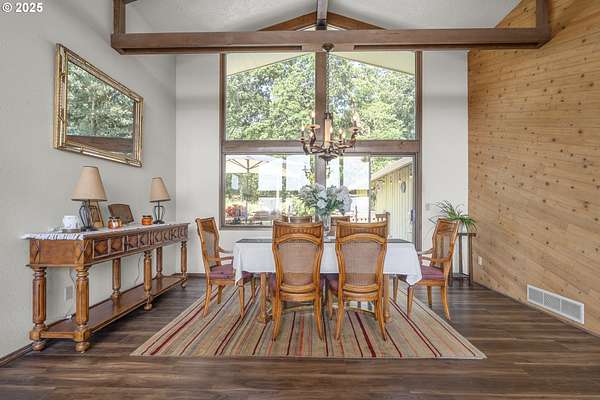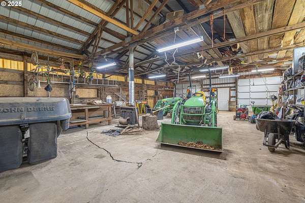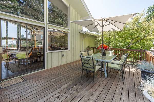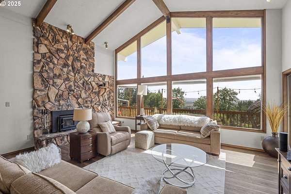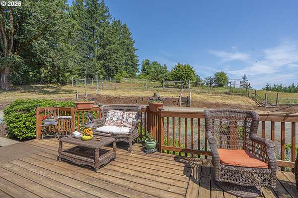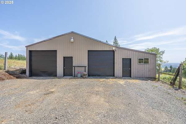 Idyllic country living offering a three-mountain vista just minutes from town with 10 acres of rolling and gently sloping land, a spacious shop+barn and chalet-style home with a wall of windows on two sides to capture both sunrise and sunset. The terrain is suited to vineyard, orchard, pastures and gardens. The house lends itself to entertaining, with a partial wrap deck oriented to a sunrise view and a second deck with view of the backyard. Inside: vaulted, NW timbered ceiling, newer wood laminate floors, a big country kitchen with double oven, induction range, movable food prep island, wine fridge, plenty of room for casual dining and tons of storage. The living-dining room combo is expansive and sun-splashed. The main level primary suite has its own slider access to the sunrise deck, dedicated bath with soak tub, shower and walk-in closet. Downstairs, a bonus room for rainy day recreation, or maybe a home gym? and a family room. Separate entrance -- dual living potential! Wanna talk shop? It's 48 X 30 with concrete floor, powered and fully plumbed, with two nearly 9-foot roll doors and an attached 3-horse stall and heated tack room.