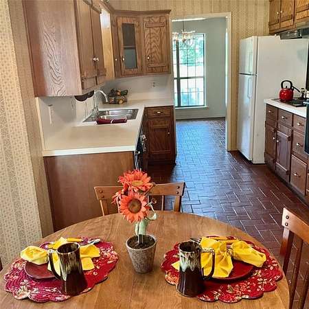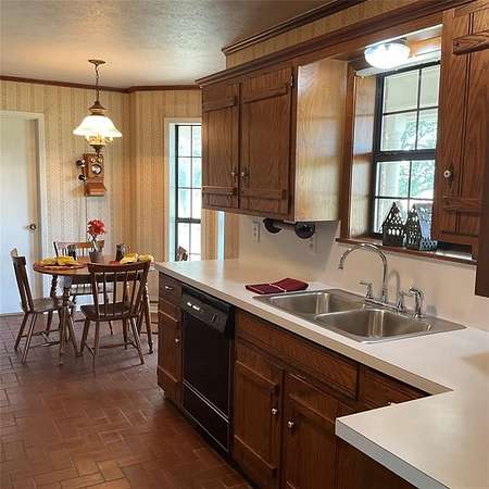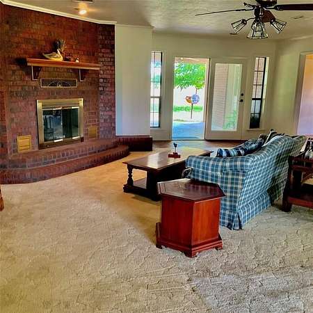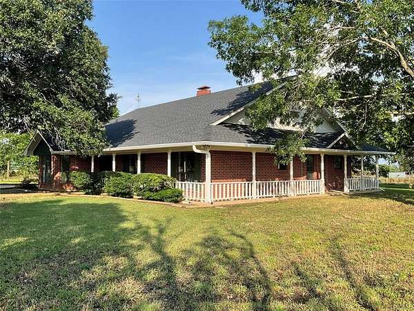 True country living! Just imagine quiet sunrises and warm sunsets from the wrap around porch! This custom-built, one owner home features a roomy den flanked with a wood burning fireplace and plenty of space for entertaining family and friends. The galley kitchen, breakfast and dining rooms are accented with vintage brick floors. An ample primary suite features walk-in closets, a bath with separate shower and extra linen storage. And for nighttime pet convenience there is a door to the porch and back yard! A two-car carport features storage rooms and it's only a short walk to the barn and fishing pond! This little ranch features amazing pasture grasses for your future herd, and an Ag Exemption is currently in place!