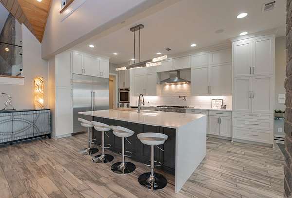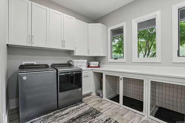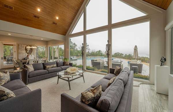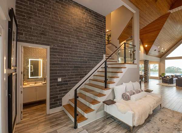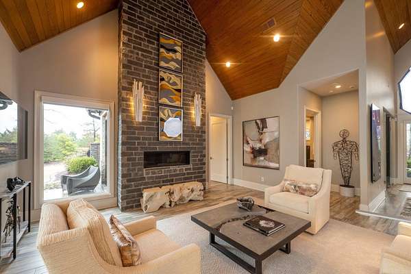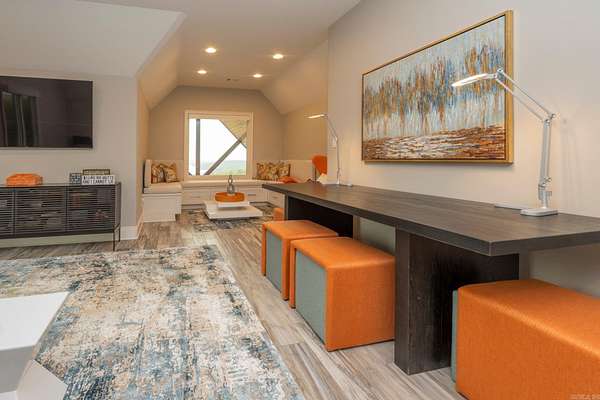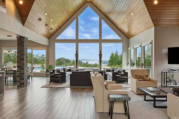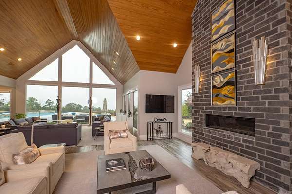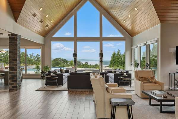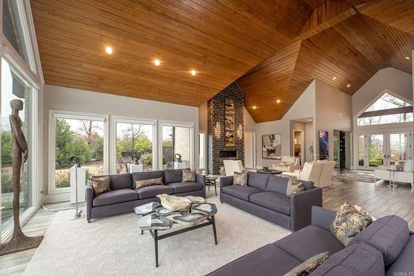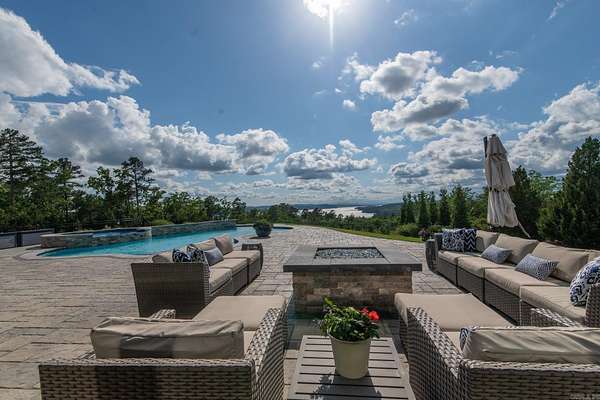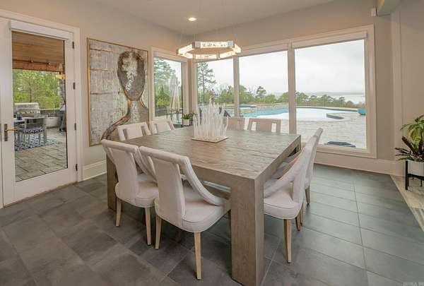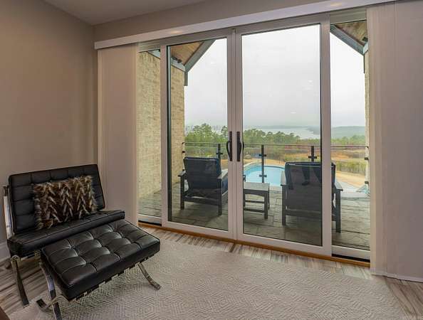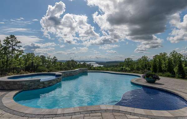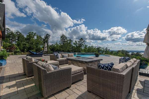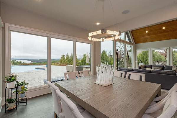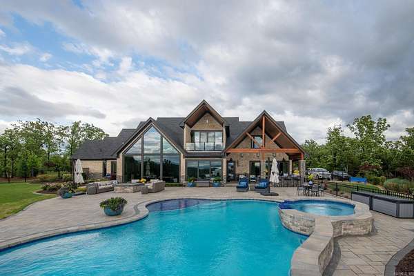 Step inside this one-of-a-kind masterpiece. As you enter, you'll be greeted by a stunning view of the pool, overlooking the wooded terrain and Lake Maumelle. The open foyer welcomes you with a vaulted, jagged wood ceiling and a custom-designed staircase with glass walls. Equipped with Savant technologies this house is a must see. Kitchen has Thermador appliances, a double oven, a Sub-Zero fridge/freezer unit, a crushed ice machine, quartz counters, a walk-in pantry, and a glassed wine room w/ a wine fridge and wet bar. Enjoy two main living areas: one perfect for cocktails overlooking the pool & lake, and a cozy den with a fireplace for relaxing w/ a book. Tile flooring extends throughout the home, and all windows are tinted for UVA sun protection and equipped with Hunter Douglas electric shades with personalized automation. Additional features include a water filtration system, dehumidifying HVACs w/ multi-zone controls, tankless gas water heaters with continuous hot water flow, a Generac generator, and a tornado-safe roof. Step outside to a private setting with estate landscaping, a pool and spa, an outdoor kitchen, an automated mosquito misting system, speakers, and cameras.