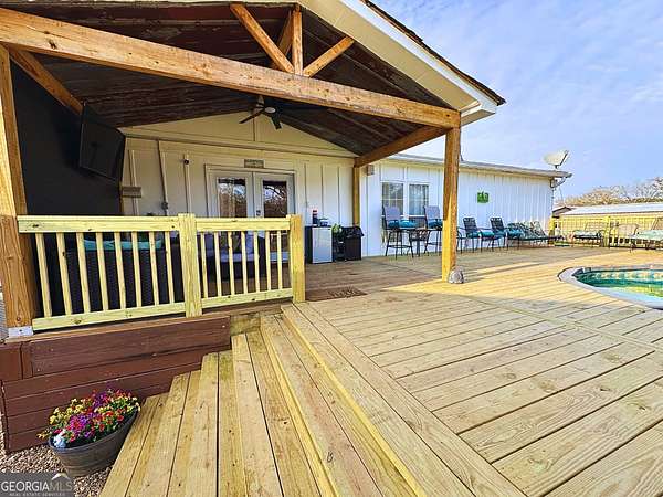Country living on 2 acres near Lake Oconee! Beautifully updated 3BR/2BA home featuring an open floor plan with a huge living room and fireplace, remodeled kitchen with a massive walk-in pantry, and a desirable split bedroom plan for added privacy. Enjoy the stunning rocking chair front porch or relax out back on the huge partially covered deck with electric fireplace overlooking the 15x30 above-ground pool-perfect for entertaining. Hardie board siding, carport, and storage shed add even more value. Conveniently located 0.8 mile to Swords Boat Ramp, 1.6 miles to Blue Springs Marina, 6 miles to Sugar Creek Marina, and only 11 miles to Madison. Motivated seller - schedule your showing today!