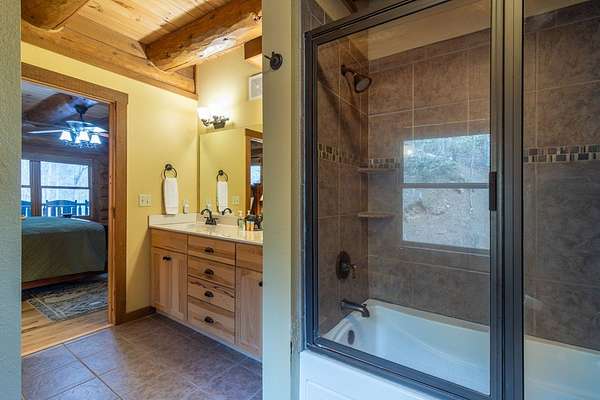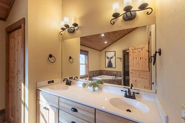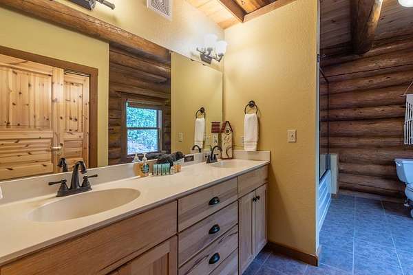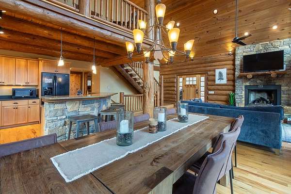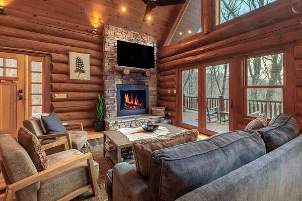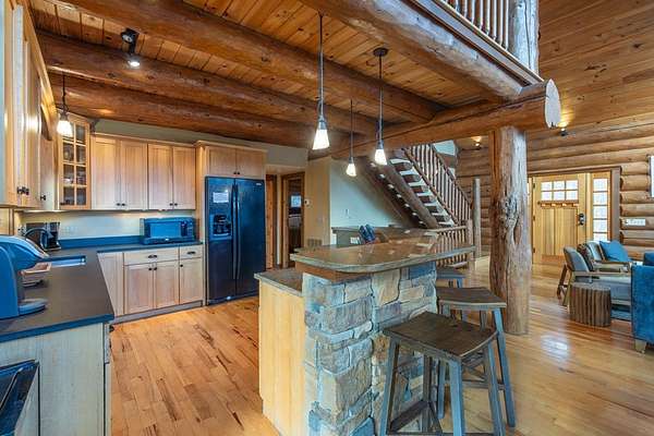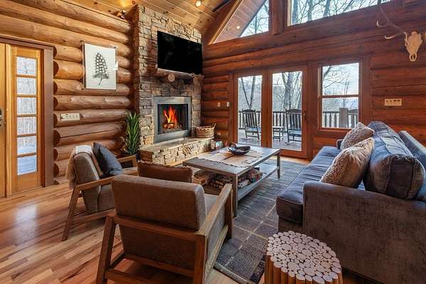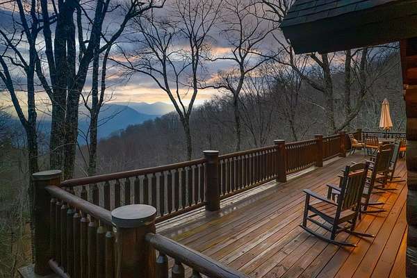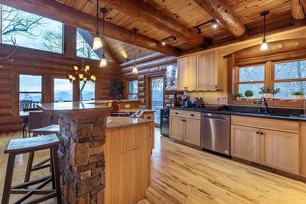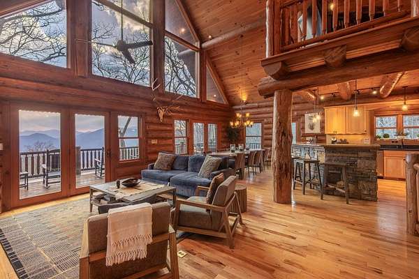 A true log home, custom built with Canadian Lodgepole-Pine. Artisans painstakingly crafted each log to fit, creating a unique and personalized touch. Located 1.5 miles from the four-lane highway, the views are unparalleled in proximity to Sylva, Dillsboro, Cullowhee, and Cherokee. Featuring two primary suites with tiled baths and granite countertops. Two expansive decks to enjoy the natural setting in peace and privacy. Real stone fireplaces on the main and lower level create a warm cozy ambiance, or step outside and relax in the hot tub. The lower level has a card table, billiards, double bunk beds and a full bath. Located in a gated community with paved roads to the door!