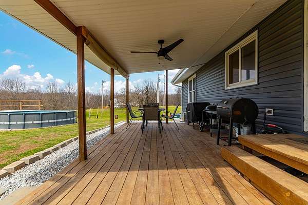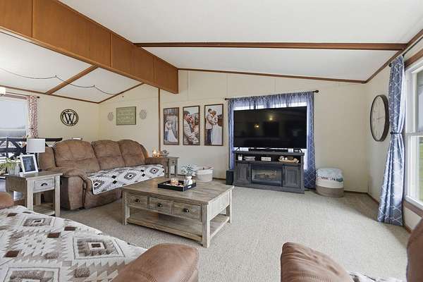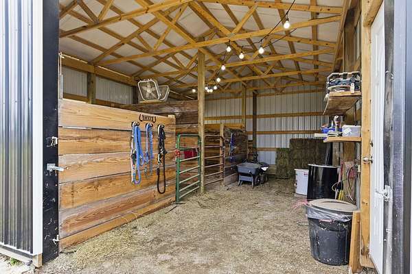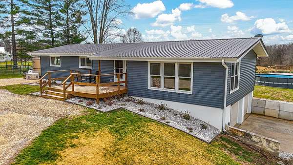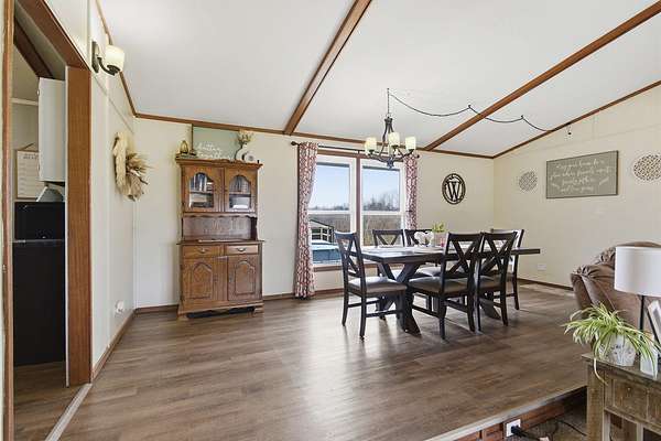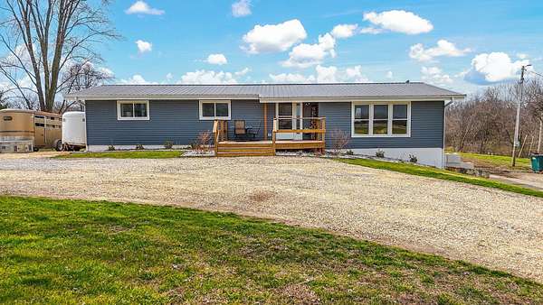 Peaceful country living meets everyday convenience in this 3 bedroom, 2.5 bath ranch home situated on 6 beautiful acres, just minutes from town on blacktop! Step inside to find a comfortable main level layout with vaulted ceilings, an abundance of windows that fill the home with natural light, and many new updates throughout. The partially finished walkout basement adds incredible flexibility with a family room and two non conforming bedrooms ideal for guests, hobbies or a home office. Outside is where this property truly shines! Take in the wide open views, beautiful sunsets from your back porch, your own private pond, and plenty of room to roam! Equestrian enthusiasts or hobby farmers will love the newer 20X30 horse barn complete with an attached 8 ft lean to. The newer roof and siding, not only adds peace of mind, but also add long-term value to the home. If you've been dreaming of space, privacy, and a slice of country life, without sacrificing convenience, this property checks all the boxes!!
