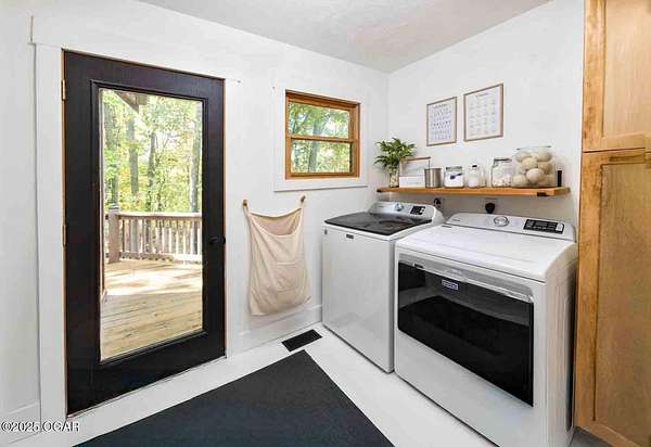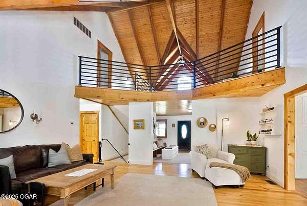 Tucked among the trees on 15 private acres just minutes from Cassville, this beautiful property delivers the seclusion you crave with the convenience you need. This spacious home has been freshly updated and includes five bedrooms, three and a half baths, two living spaces, an office, and plenty of storage, perfect for work, play, or relaxation. The vaulted great room centers around a gorgeous wood-burning fireplace flanked by walls of windows, while milled hardwood floors glow in natural light. The custom kitchen is sure to please with abundant storage, quartz counters, and hand-built cabinetry. The Primary bedroom sits privately on the main floor; remaining bedrooms thoughtfully split between lower and upper levels for ultimate privacy. Lower level also features office and secondary living space that would be perfect for a media room getaway. Also in the basement is the ''John Deere'' room, ready for toys or the biggest holiday decor collection in Barry County. Upstairs, sunny loft offers a natural-light retreat for anyone needing a reset. Out back: heated and insulated shop building ready for projects, toys, or easy conversion into guest quarters. Outside you'll find two established garden spaces, cleared pasture, mature woods, room for chickens, horses, 4-wheelers, hunting, fire pits, or simply doing nothing at all. Sellers say it best: ''We've loved every single day here. This home gave us space to breathe, grow, entertain, and just be. Mornings feel slow in the best way, watching the sun rise across the field while deer wander through at dusk. There's room for animals, hammock days, and evenings around the fire. We hope the next family feels the same peace.'' With a new well system, new fireplace, added half bath, quartz kitchen, custom everything, metal-roof work, and every major upgrade already behind you, all that's left is to move in and start living the life you've been picturing. Come see why the hardest part of owning this place is ever leaving.