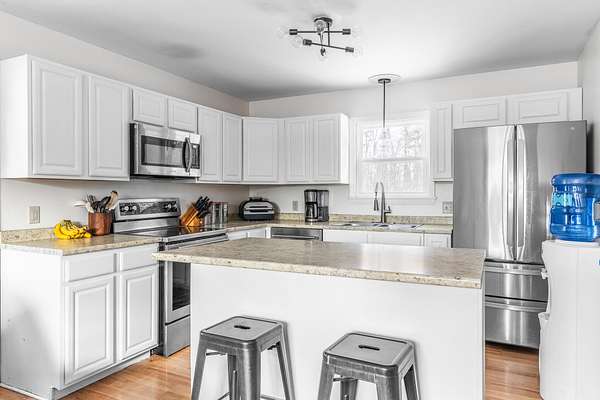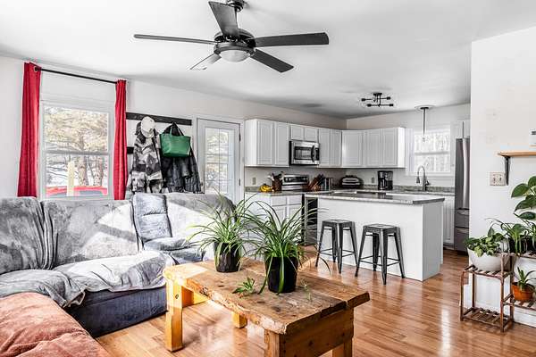 Discover the perfect blend of country charm and modern convenience in this delightful 3-4 bedroom raised ranch, nestled on a picturesque +/-2-acre lot in Hampden. Move-in ready and designed for comfortable living, this home offers a peaceful retreat while being just minutes from town and I-95. Step inside to find a bright and airy open-concept kitchen and living area, complete with ample counter space, updated appliances, and a versatile center island that can be repositioned to suit your needs. The upper level also features two spacious, sun-filled bedrooms and two full bathrooms--one with a tub and the other with a shower--ensuring convenience for all. Downstairs, a cozy second living area or den provides additional space to relax, along with two more rooms that can serve as bedrooms, a home office, or a creative space. The utility room with washer/dryer hookup is also located on this level for added functionality. Outdoor enthusiasts will appreciate the fully fenced-in backyard, perfect for pets or privacy, while the property also features established fruit trees, raised garden beds in the front yard, and a charming chicken coop. A side deck offers a great spot to relax and take in the surroundings, and multiple outbuildings provide plenty of storage for tools and outdoor equipment. Don't miss the chance to make this versatile and inviting home your own!