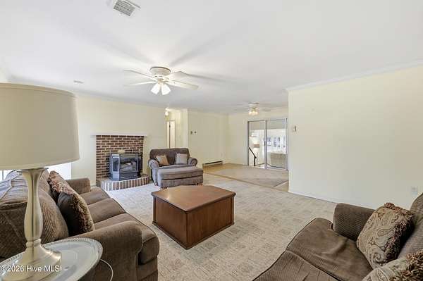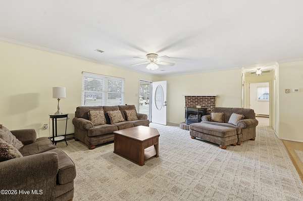 - Blinds/Shades, Ceiling Fan(s), Gas Log, Walk-In Shower
