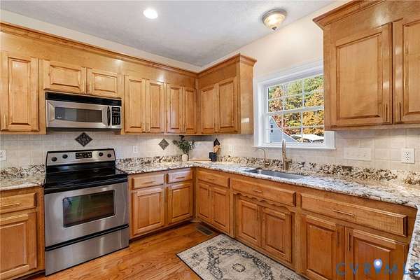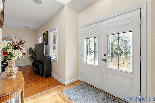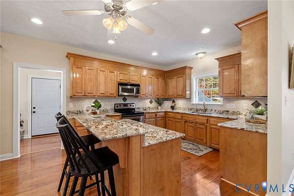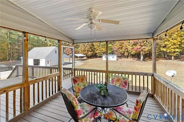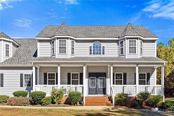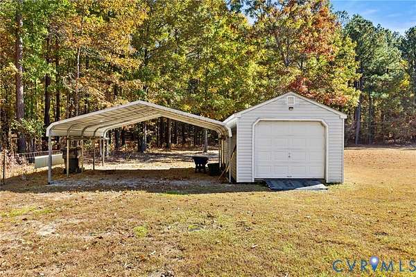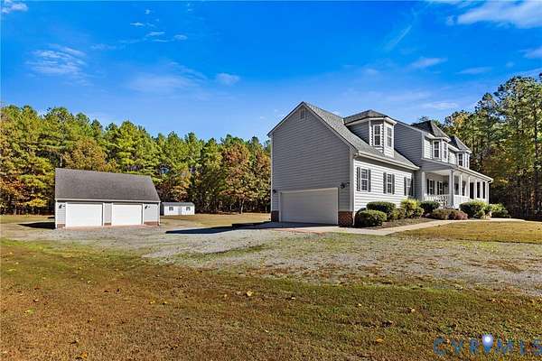 Welcome to Your Private Retreat! Tucked away on a beautiful and expansive 4.2-acre lot, this meticulously maintained 4-bedroom, 2.5-bath home offers complete privacy just 5 minutes from I-95-providing effortless access for commuters and only a short 25-minute drive to Fort Gregg-Adams. A remote-controlled gated entrance welcomes you to this serene property, combining convenience, comfort, and sophistication. Step inside to find a spacious and thoughtfully designed layout with solid hardwood floors throughout the entire home (most are NEW). Fresh NEW paint throughout. The gorgeous chef's kitchen features a large center island, a ton of cabinet storage plus built-in pantries, NEW LUXURY granite countertops, ceramic tile backsplash, custom wood cabinetry, and a sunny dining area. The expansive family room invites relaxation with its surround sound system, cozy gas fireplace, and seamless access to the 12x12 screened-in porch-also equipped with surround sound-and adjoining deck, perfect for entertaining or quiet evenings outdoors. Elegant hardwood floors accent the formal dining room & foyer, while a generous utility room with abundant cabinetry provides practical functionality & direct garage access. The primary suite is a true retreat, boasting vaulted ceilings, a spa-inspired bath with a jetted tub, separate shower, double vanity, and a spacious walk-in closet. 3 additional bedrooms, all LARGE, offer comfort & flexibility, with the largest featuring built-in surround sound-ideal for a media or guest room. All bathrooms have NEW LUXURY granite countertops & updated fixtures Additional highlights include a 2-car attached garage, 2-car detached garage with built-in bar plus full 2nd level walk up storage, massive RV carport, a water softener system, & the convenience of a secure, remote-controlled gated entry. With its tranquil & private wooded setting, manicured grounds, & unbeatable location, this exceptional property blends tranquility with accessibility-making it the perfect place to call home.